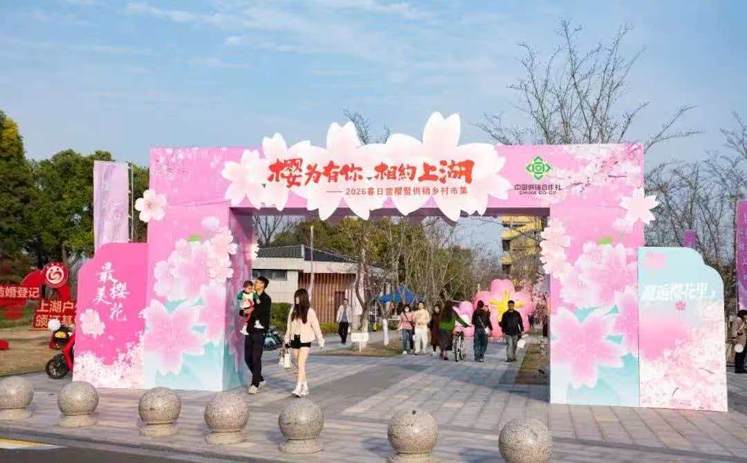 4月2日,我市迎来中小学春假首日,不少市民走出家门踏青赏春。在海安上湖生态区,由海安开发区、海安市供销合作总社等单位联合主办的“樱为有你,相约上湖”——2026春日赏樱系列活动聚满了人气,“供销好物”乡村市集热气腾腾,优质大米、时令果蔬、特色禽蛋、老字号糕点等百余种名特优农产品集中亮相,非遗展示、美食品鉴、趣味互动轮番登场。