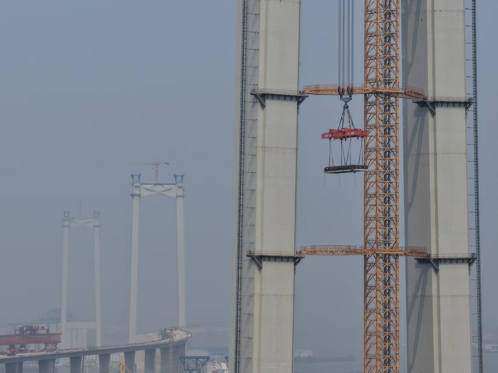 世界最大跨径悬索桥进入上部结构施工 张靖皋长江大桥主索鞍精准吊装