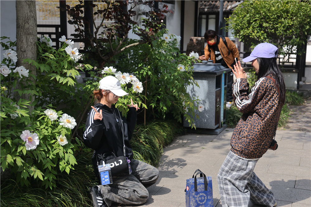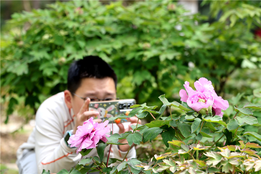 活动启幕当天,正值南通中小学生春假第一天,亲子游客纷至沓来,在此欢度假日。市民喜奶奶一早便带着孙女前来游玩。登山赏景,再行至北麓园赏花,不知不觉就到了午后。她说:“这是孩子第一次来狼山。往年我都是陪父母来赏牡丹,这次趁着小孩放假,带她来体验一番。这里花美景美,非常适合全家出游。”城中小学学生施源一路边走边拍,沉浸在花的世界中,他说:“既爬了山,又逛了牡丹园,还尝了牡丹花文创冰淇淋,春假第一天过得充实又开心。”