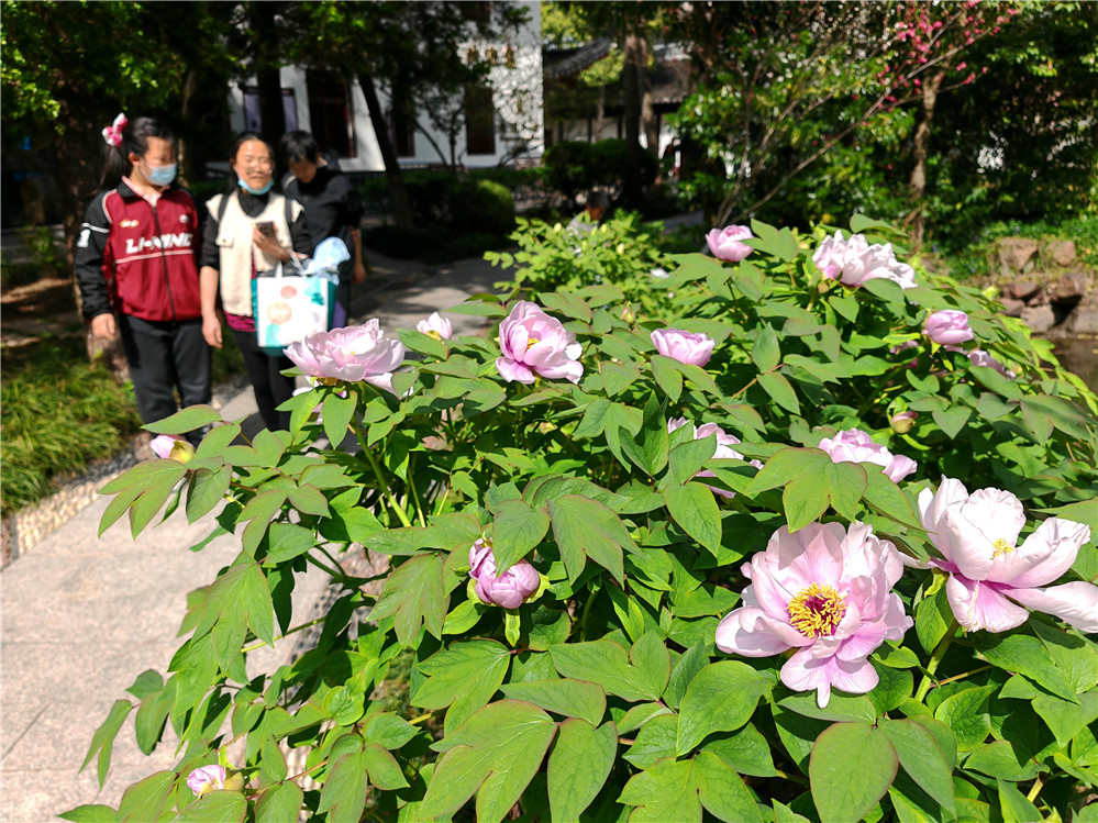 步入狼山东大门,一路繁花相伴,满眼皆是春意。北麓园、凌霄长廊、入山之门万株牡丹竞相绽放,白的清雅似雪、红的灼灼如焰;亦有花苞含羞待放,酝酿着一场更盛情的花事之约。游客们漫步其中,驻足流连,用镜头记录下春日的浪漫。謇园东西厢房则以花为媒,打造牡丹文化展陈,向观众全方位展示这项已延续十二年的品牌活动的深厚底蕴与独特魅力。