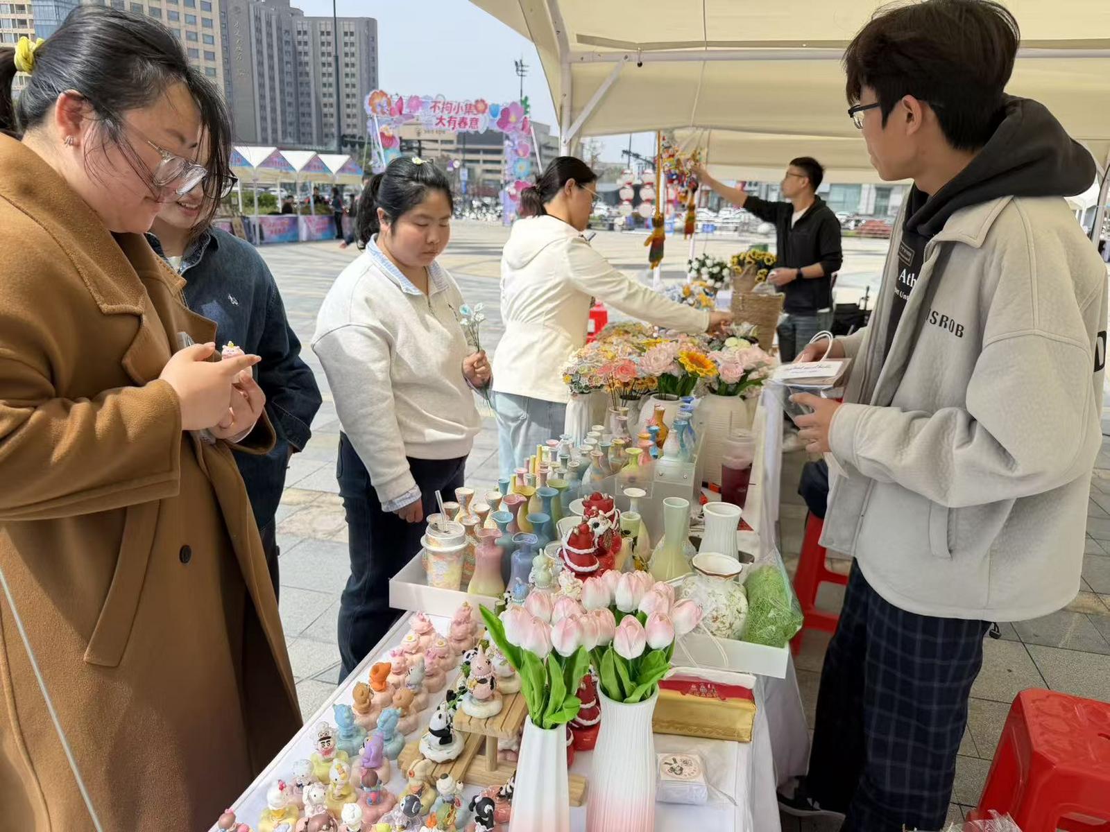“欢迎大家来打卡拍照——永不凋谢的景德镇陶瓷花。”4月2日,由崇川区商务局主办、南通金鹰中心店协办的“花朝春集·悦动崇川”活动拉开帷幕,鲜花、毛绒花、陶瓷花摊位主各出心裁,吸引了不少放假的孩子及父母。