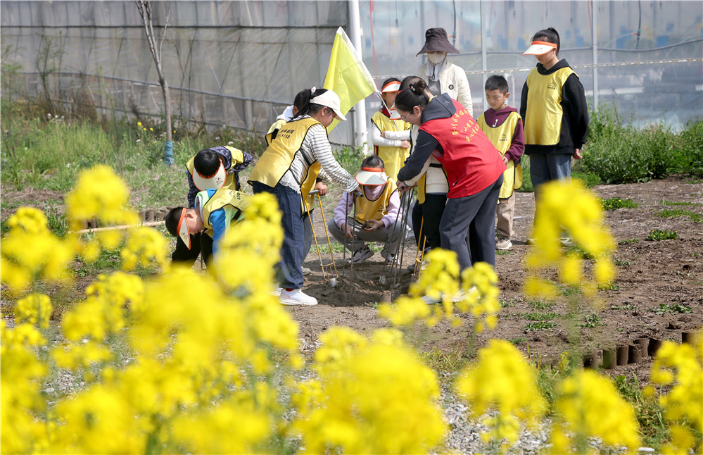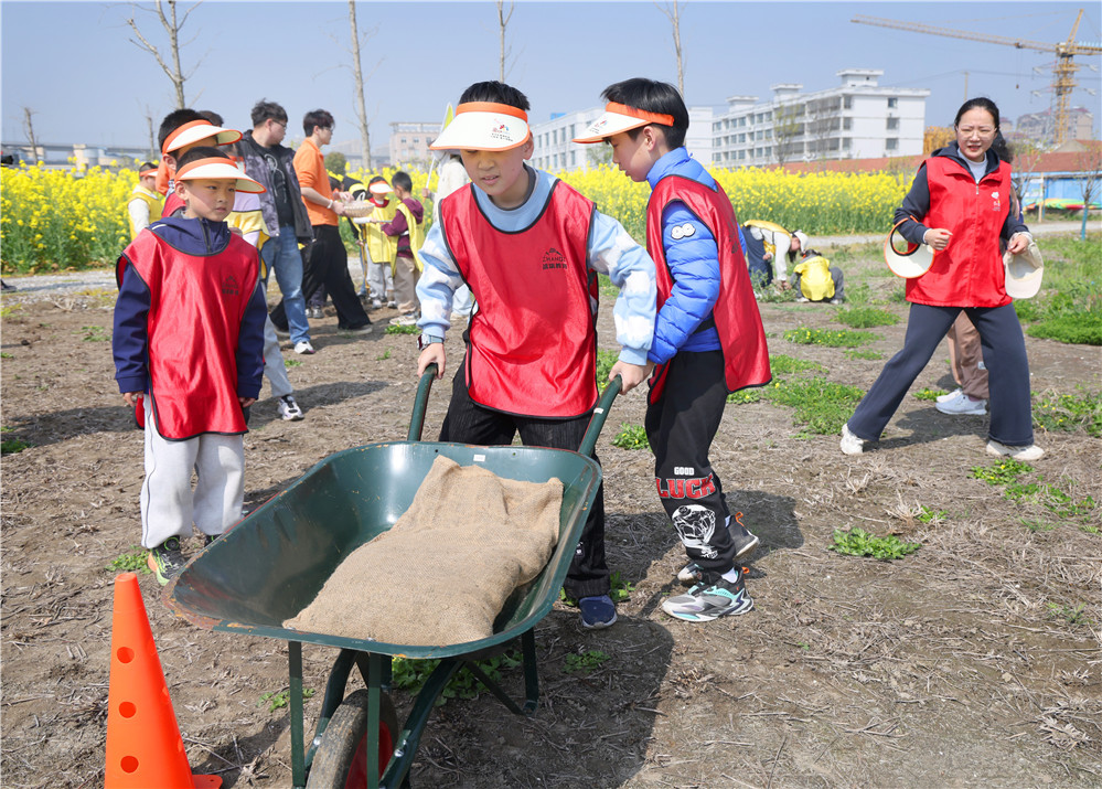 2026年4月2日,南通市春假首日,崇川区幸福街道开展“趣赴春约 品味幸福”主题春假研学活动,46名青少年齐聚幸福田园,在参与推车运土劳动实践、制作植物拓染、进行棉花钵子育种体验等丰富多彩的实践中乐享假期、增长见识。
