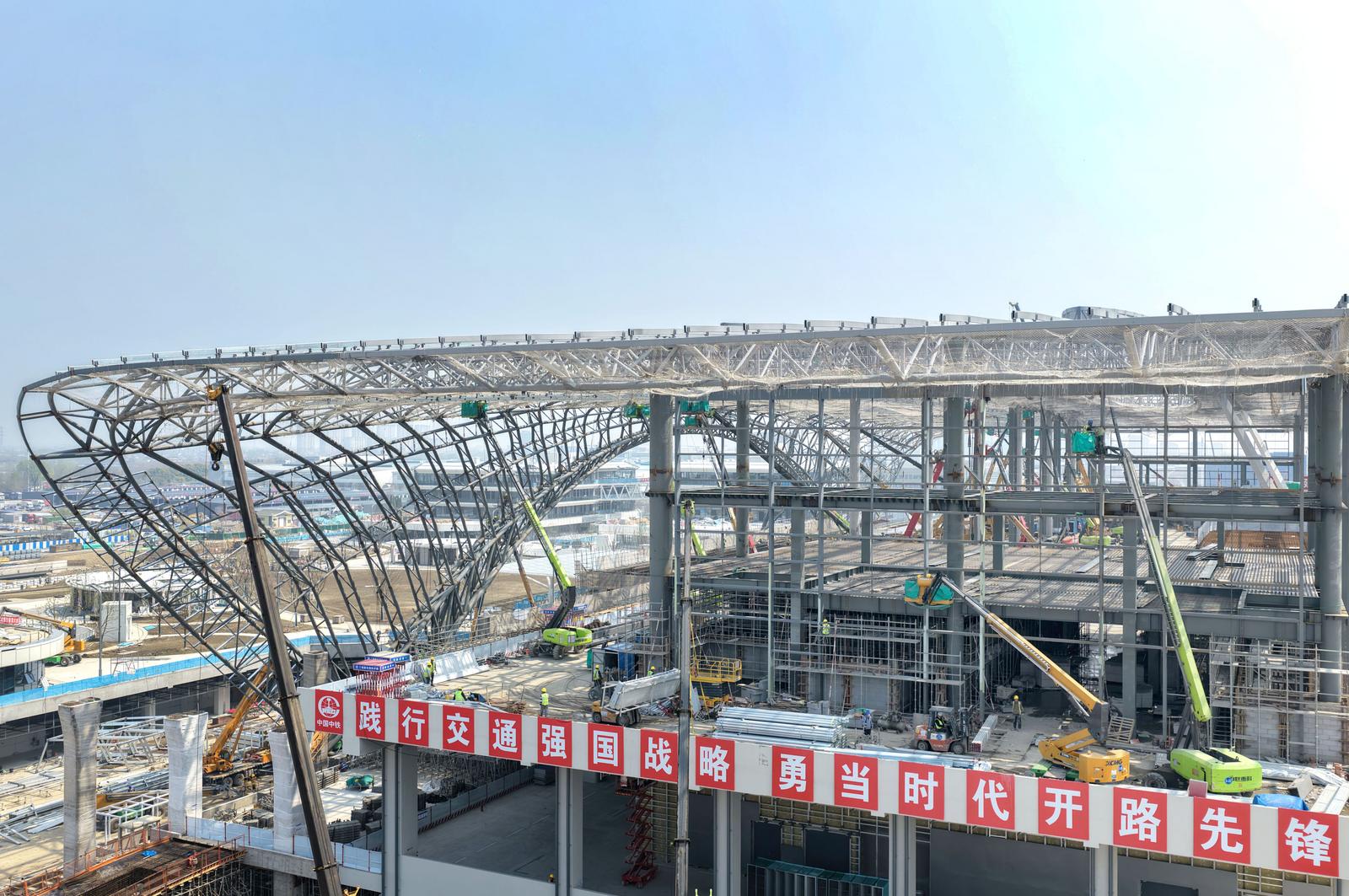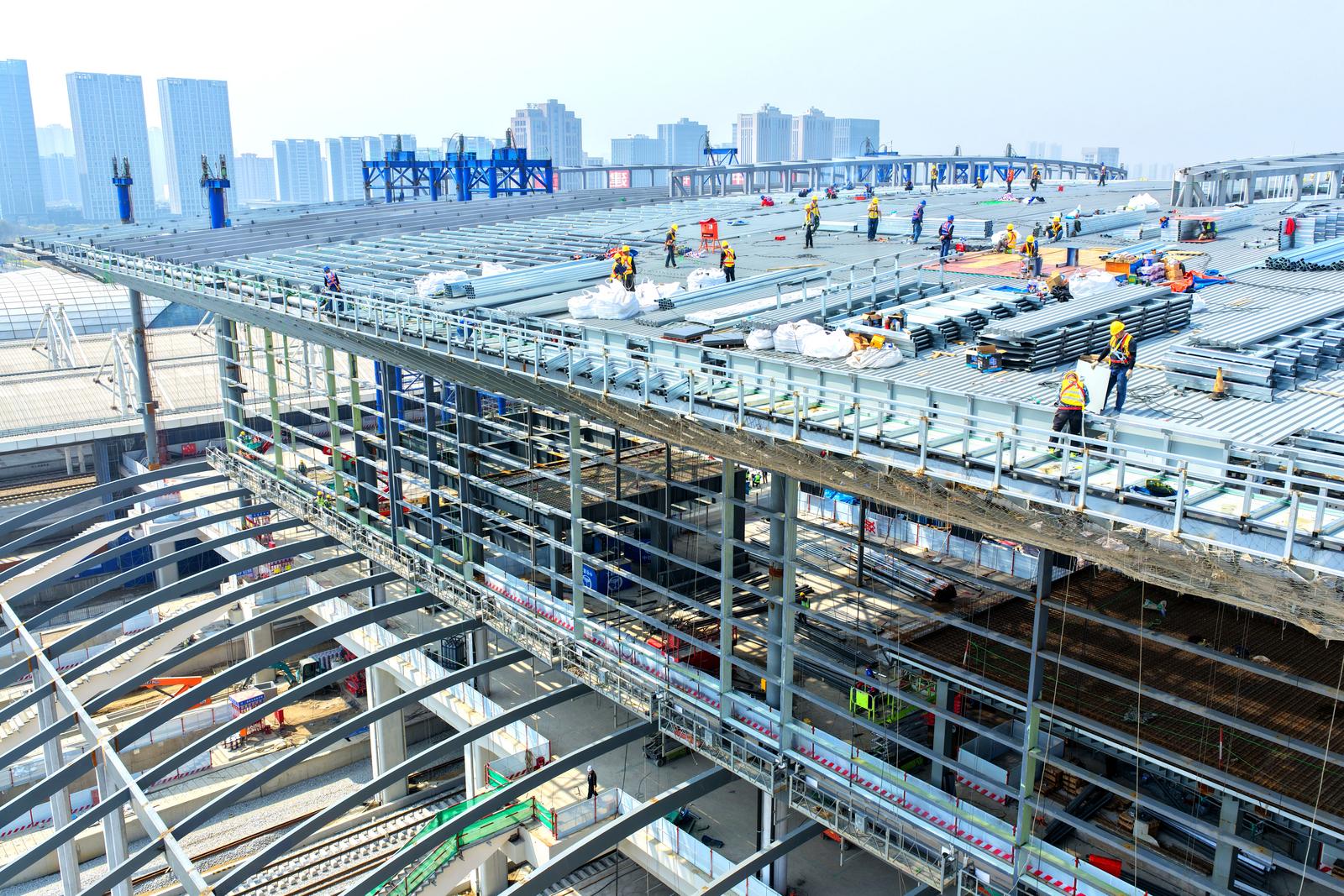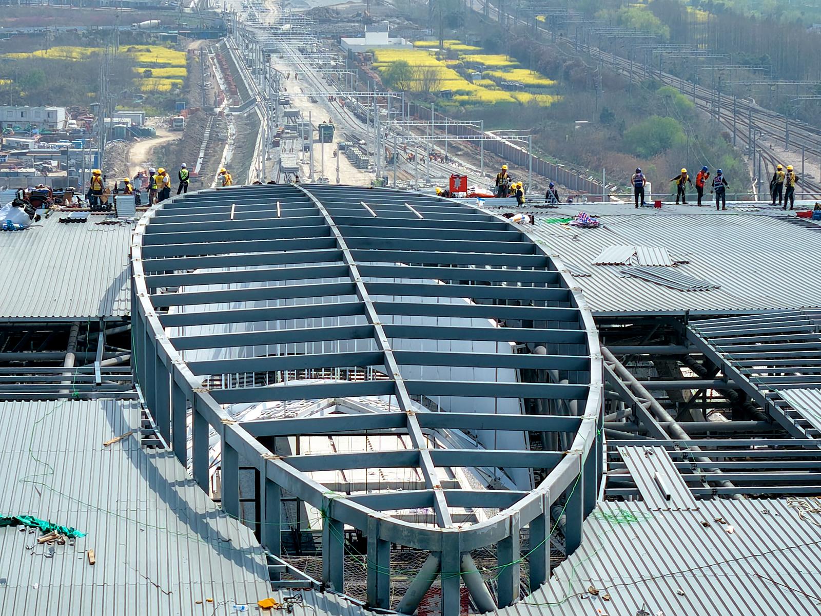 北沿江高铁重要组成部分 新建南通站站房进行金属屋面及幕墙施工
