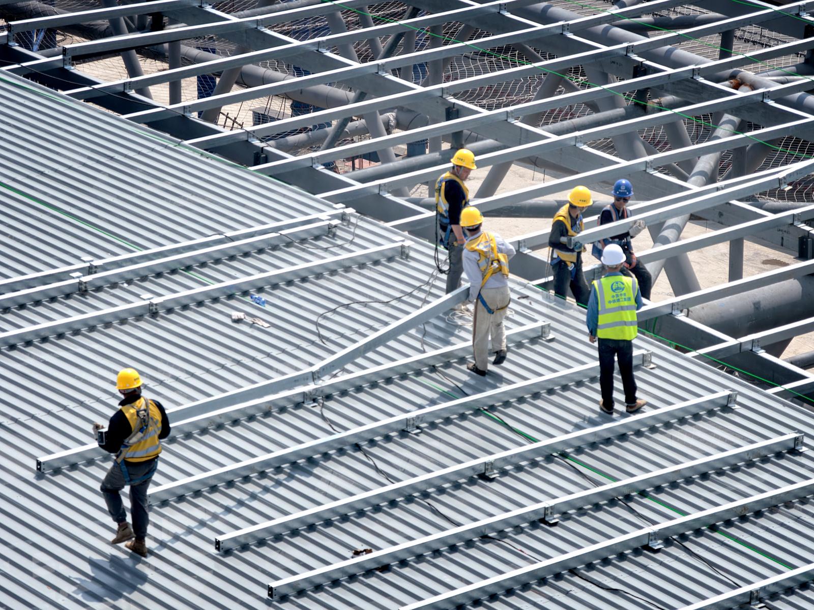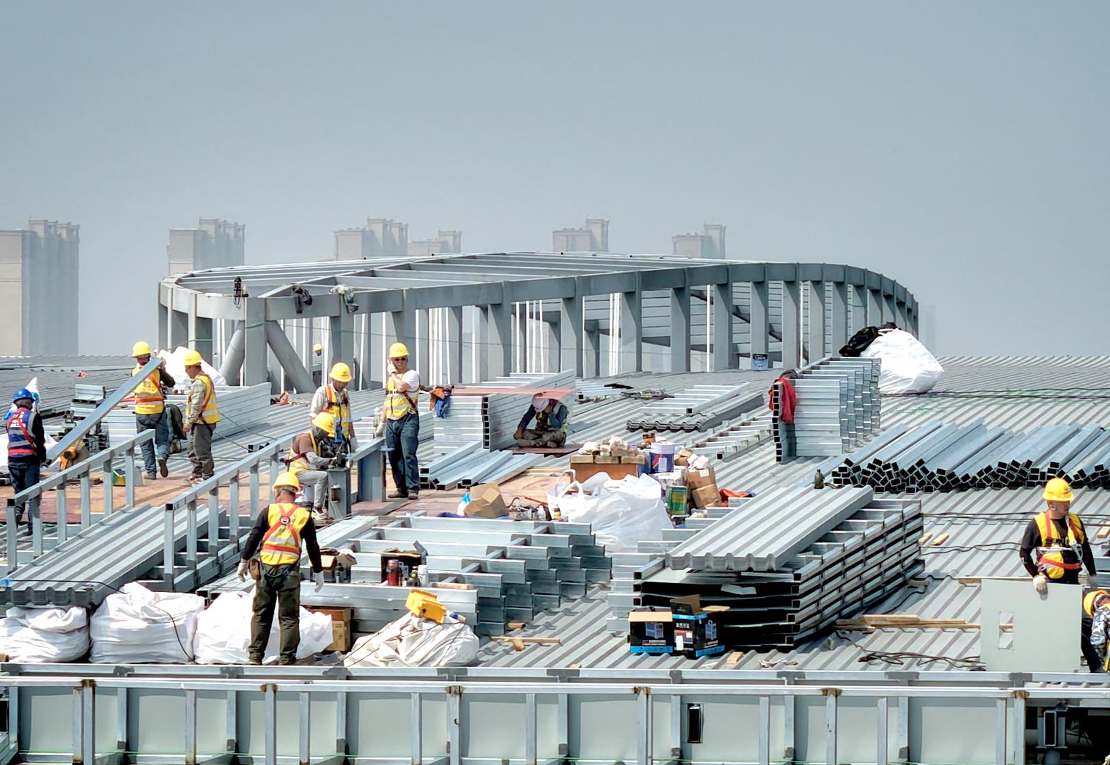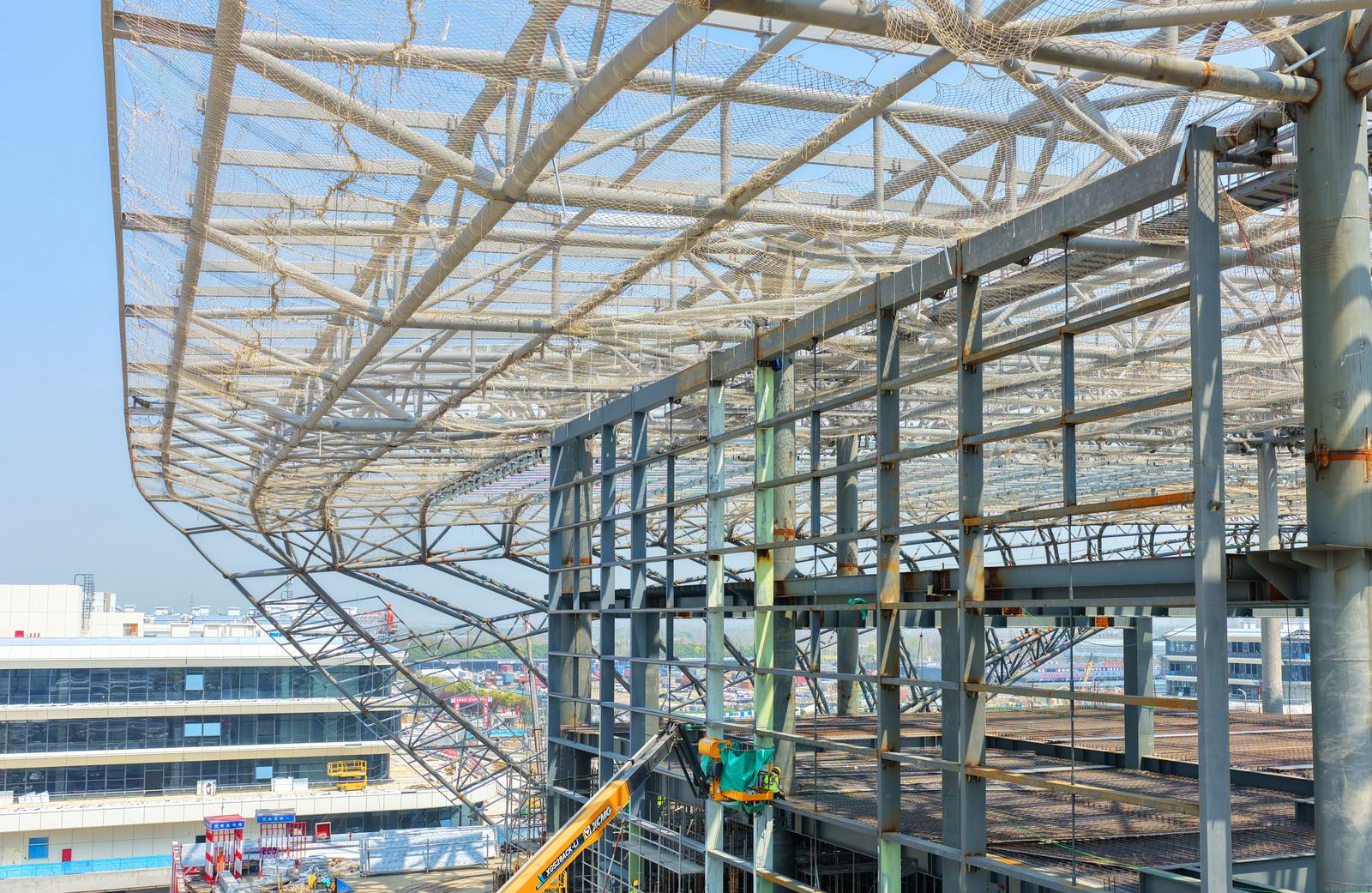 北沿江高铁重要组成部分 新建南通站站房进行金属屋面及幕墙施工