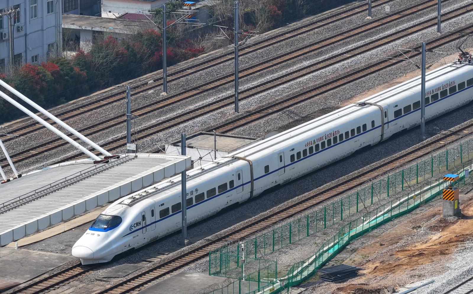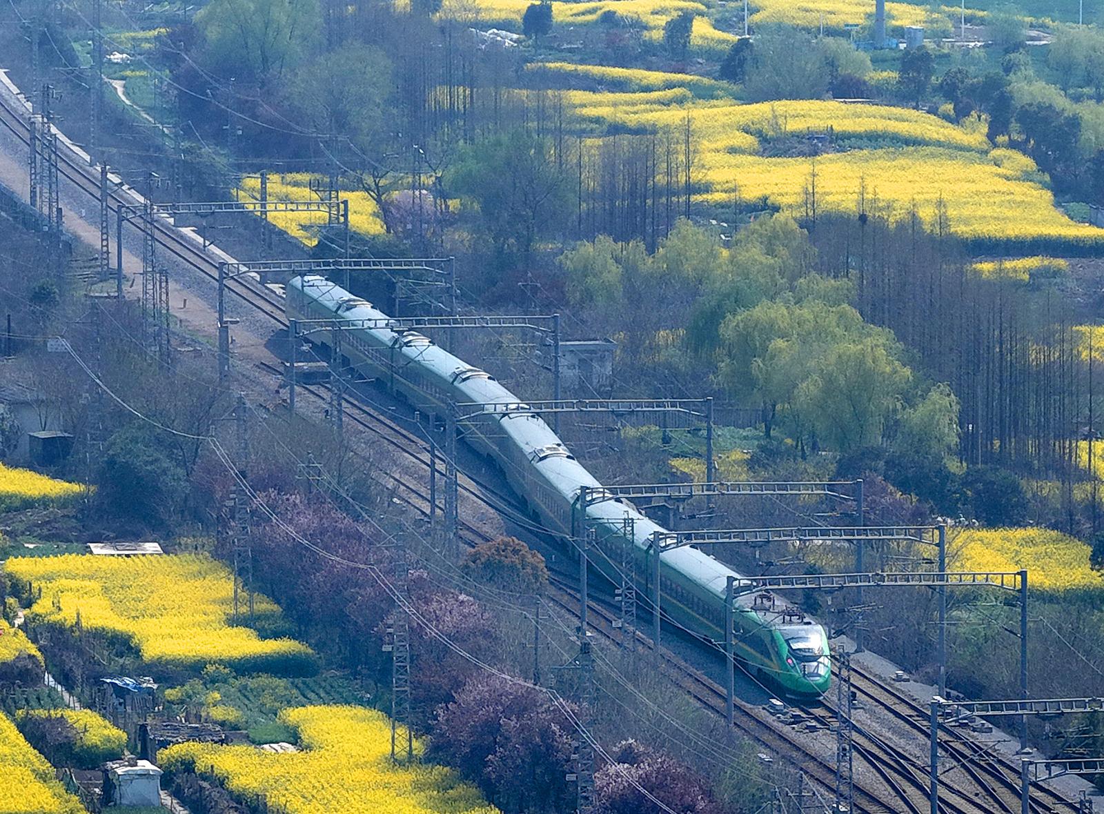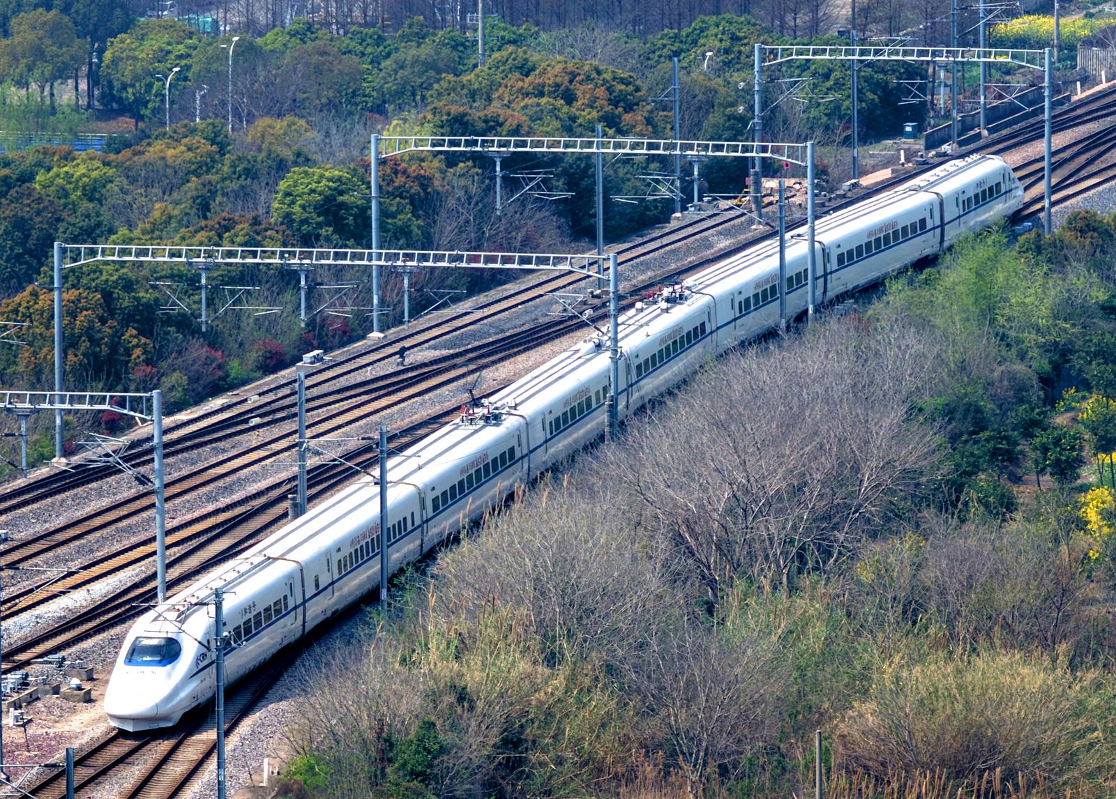 2日在南通火车站拍摄的动车组。清明假期前一天,长三角铁路迎来客流高峰,当天预计发送旅客408万人次,较去年同期多发送旅客60.6万人次,增幅17.4%。