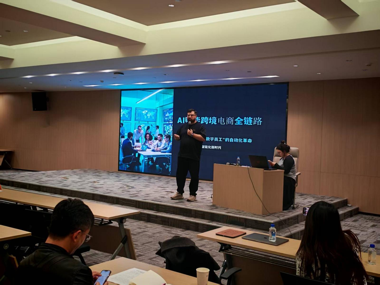 作为系列培训的压轴之作,第12期课程聚焦AI技术对跨境电商全链路的深度赋能。AI出海俱乐部创始人、张謇企业家学院外聘讲师依马木麦麦江·艾斯克,围绕“AI时代下的破局之道”,深度解析了亚马逊、TikTok Shop、Lazada等主流平台的运营图谱与选品门槛,并通过AI工具进行实操演示,为传统企业提供了人效提升、团队模型搭建及转型路径的精准指导。现场互动热烈,企业代表纷纷表示课程内容前沿、实操性强,为企业在精耕时代实现数据驱动提供了清晰的思路。