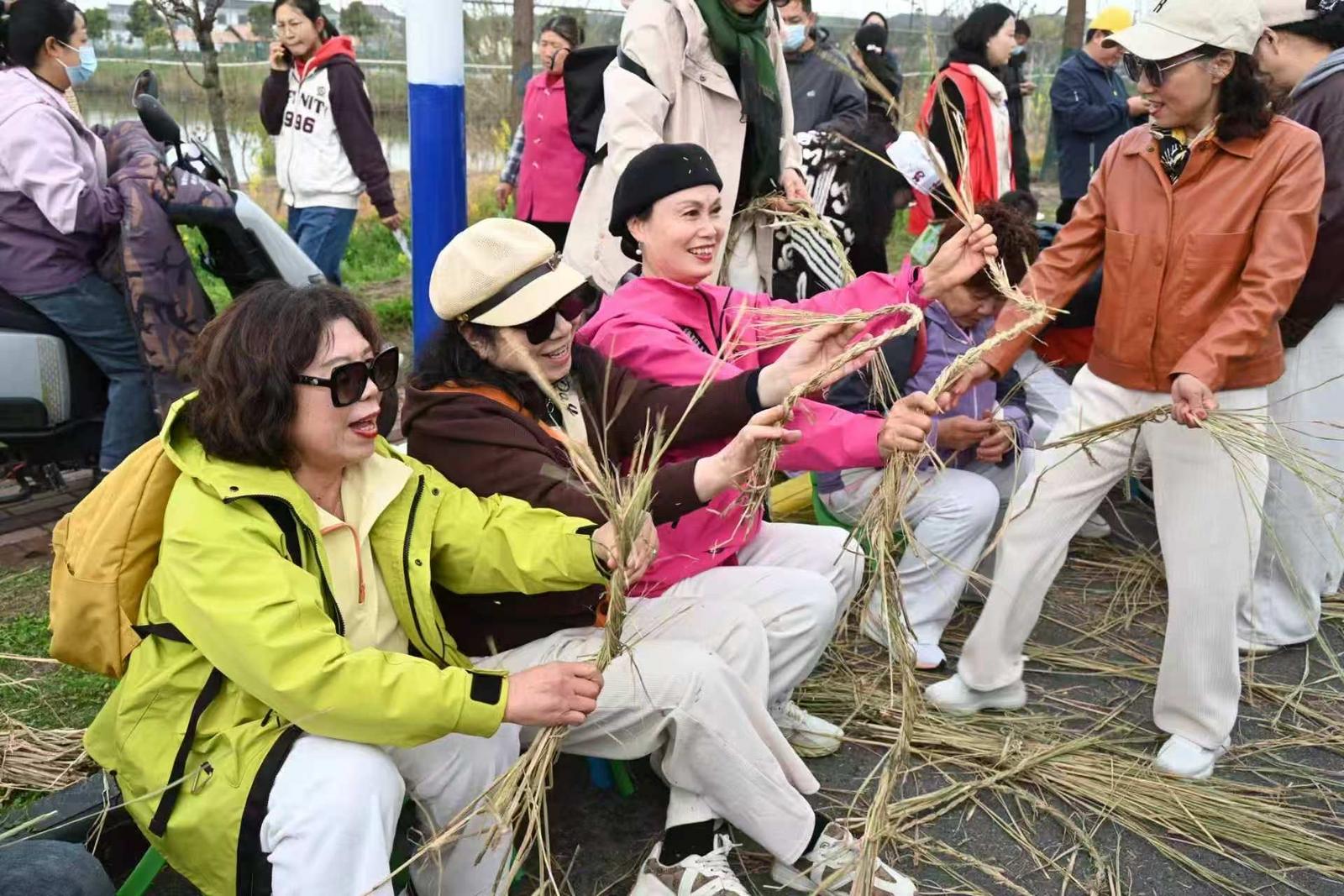 来自白甸镇的八岁男孩王沐淳趁春假跟外婆学搓草绳,小手搓得通红:“有点疼,但我知道了农民伯伯很辛苦。”如皋的胡碧草一边打连枷一边感慨:“这唤起了儿时的记忆,让我真切感受到农耕文化的温度。”