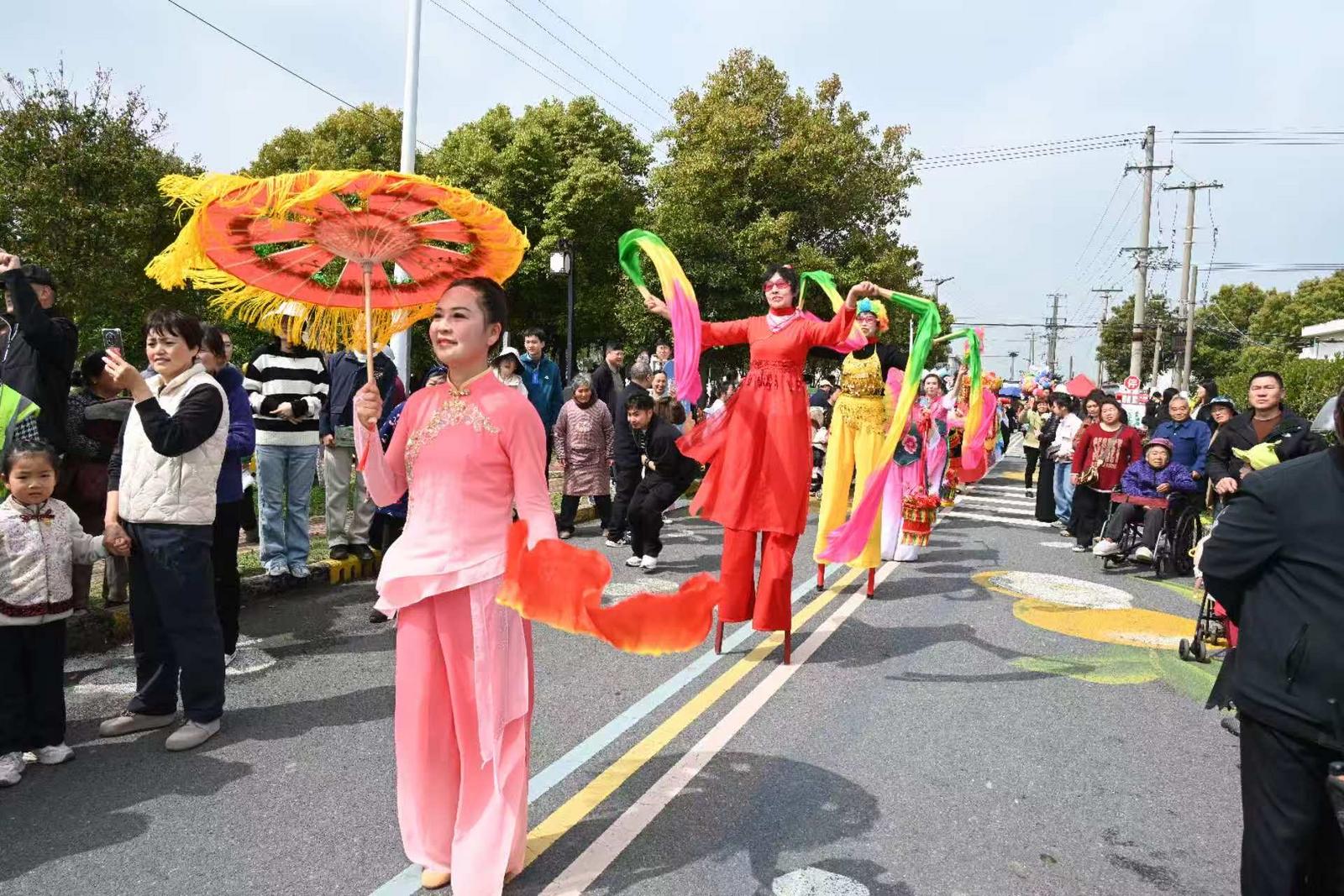文艺演出把气氛推向高潮:中国鼓震云霄,舞龙翻腾,踩高跷稳步前行,花担花船摇曳生姿,变脸引得阵阵惊呼。来自英国的Rose经朋友介绍第一次来到大公,连声道:“很有趣,下次还来。”