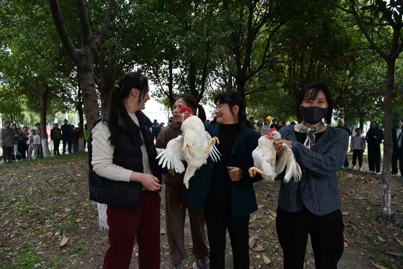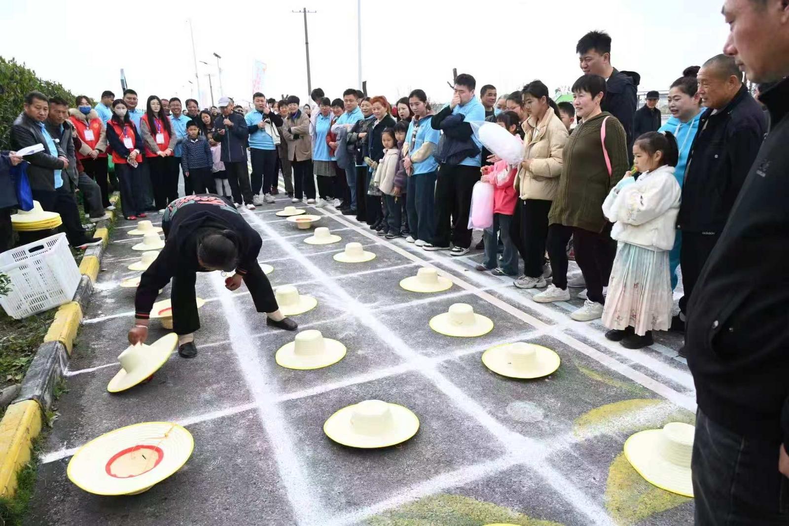 比赛项目全从田间地头走来:“拔扁担”拼腰力韧劲,30米辘轴连赛还原劳作场景,“果蔬连连看”考默契也考眼力。捉鸡互动中参赛者手脚并用、围追堵截。搓草绳、打连枷、车轮滚滚向未来等项目前,年轻游客排起了长队。