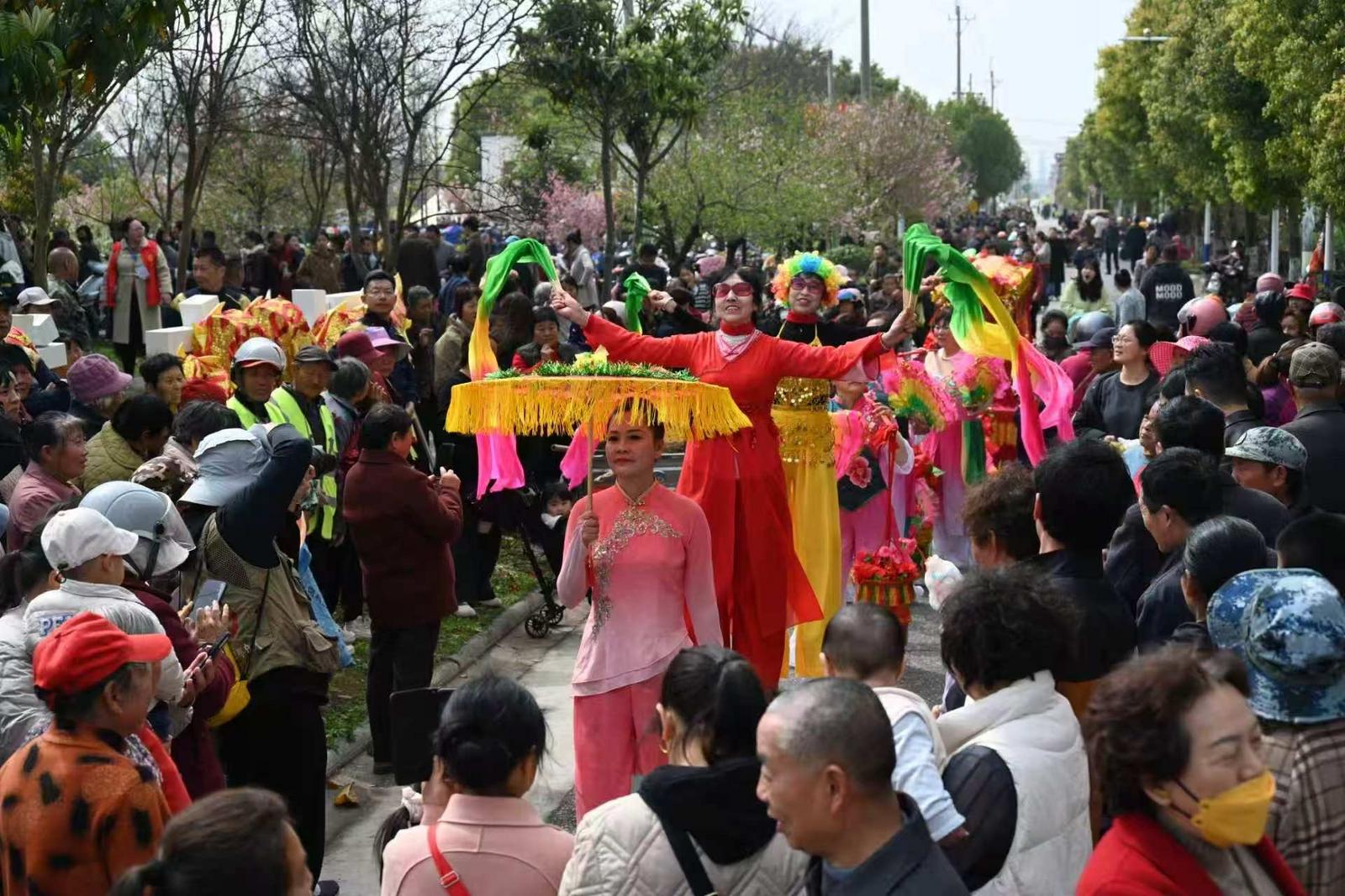 四月的海安,梨花白,杨柳青。4月4日上午,“梨花舞春意 农运绽新程”第六十三届北凌农运会在海安市大公镇于坝村举办。拔河拔扁担的号子、捉鸡打连枷的欢笑、春日集市的吆喝交织在一起,梨花的清芬里混入了泥土的质朴。