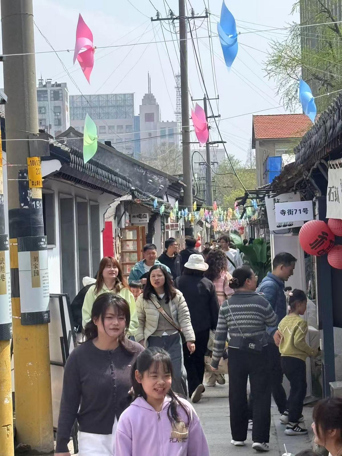 4日,是清明小长假第一天,春光明媚,惠风和畅。寺街、都市农业公园、市北景区、富美帽饰博物馆等多个文旅场所人潮涌动,欢声笑语不绝于耳。