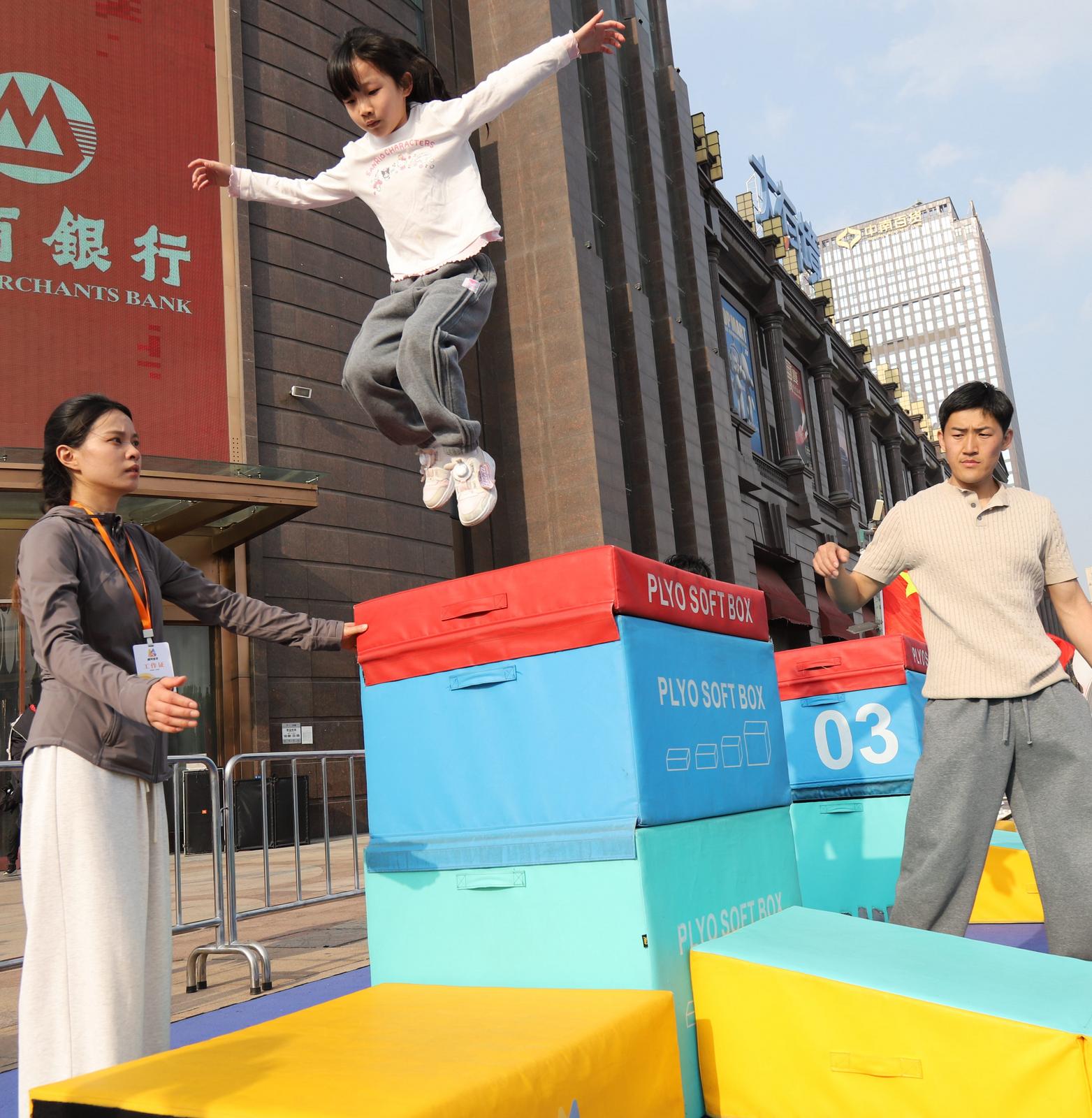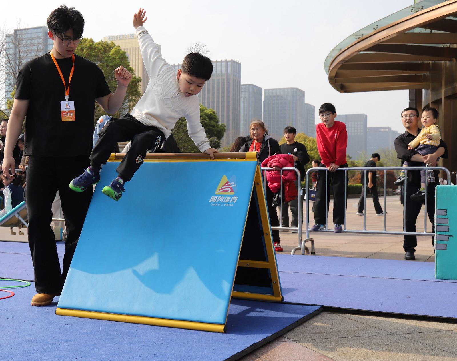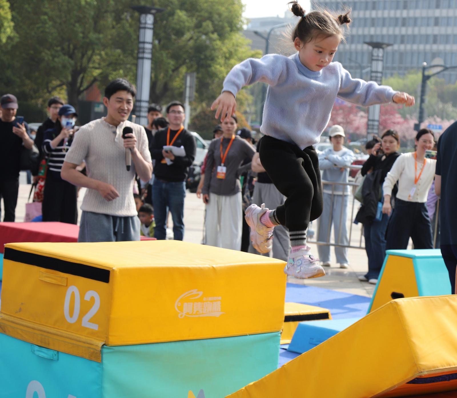 南通少儿勇士跑酷“炫技” 城市赛点燃春日活力