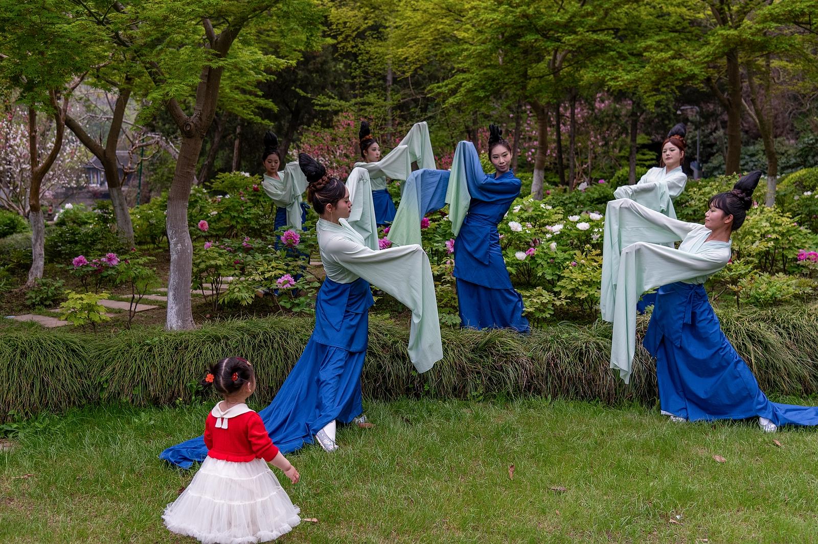 本届牡丹节不止有繁花美景,更添国风雅韵。花间上演的国风舞蹈格外吸睛,一袭青绿长裙的舞者翩跹起舞,身姿曼妙,与雍容牡丹相融,古典韵味拉满,成为花海中一道亮眼风景,为这场花事增添了别样文化氛围。