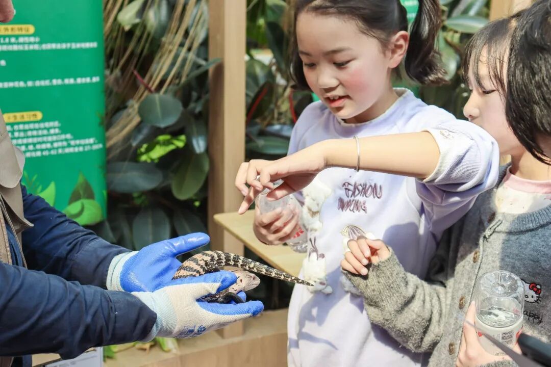 南通都市农业公园的“活体昆虫与爬宠科普展”是春假期间的另一大爆款。上百种活体昆虫与爬宠齐聚,玉米蛇温顺地盘在工作人员手上,豹纹守宫圆滚滚地趴在掌心,树蛙在枝叶间跳跃。孩子们在专业老师指导下轻轻抚摸,从最初的胆怯到后来舍不得走。