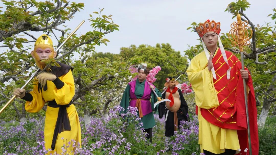 唐闸古镇北市景区的“春满唐闸·童梦漫游季”,把古镇变成了二次元的乐园。奇妙农场的“西游簪花季”更是脑洞大开。唐僧师徒四人头戴繁花巡游园内,桃园里设了“月老办事处”,古风NPC现场主持“红绳结发”仪式,不少情侣专程来“打卡”。