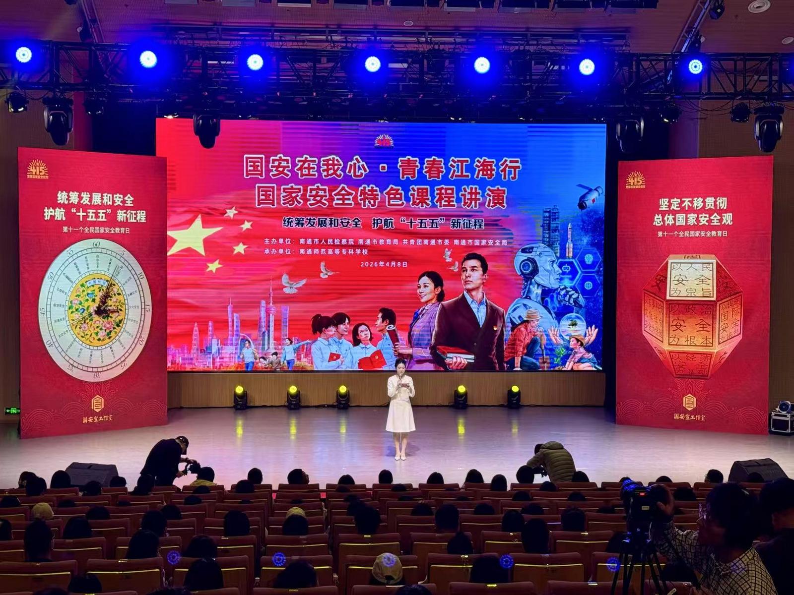 8日,第二届“国安在我心 青春江海行”国家安全教育特色课程讲演活动在南通师范高等专科学校举行,来自市检察院、深蓝航天、中天科技、市规划馆的5位专家,带着各自领域的深耕故事与前沿知识,为即将走上教师岗位的师范生们铺展出一幅涵盖政治、太空、生态、人工智能四大领域的国家安全画卷,让总体国家安全观在准教师心中扎根生长。