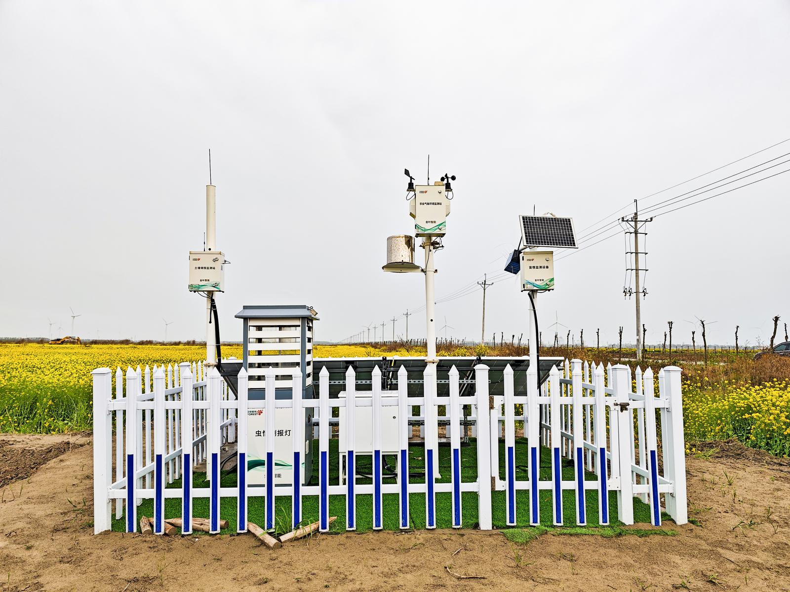 在千亩花海一角,一座监测站格外醒目,这是基地的“田间听诊器”——农田四情监测站。