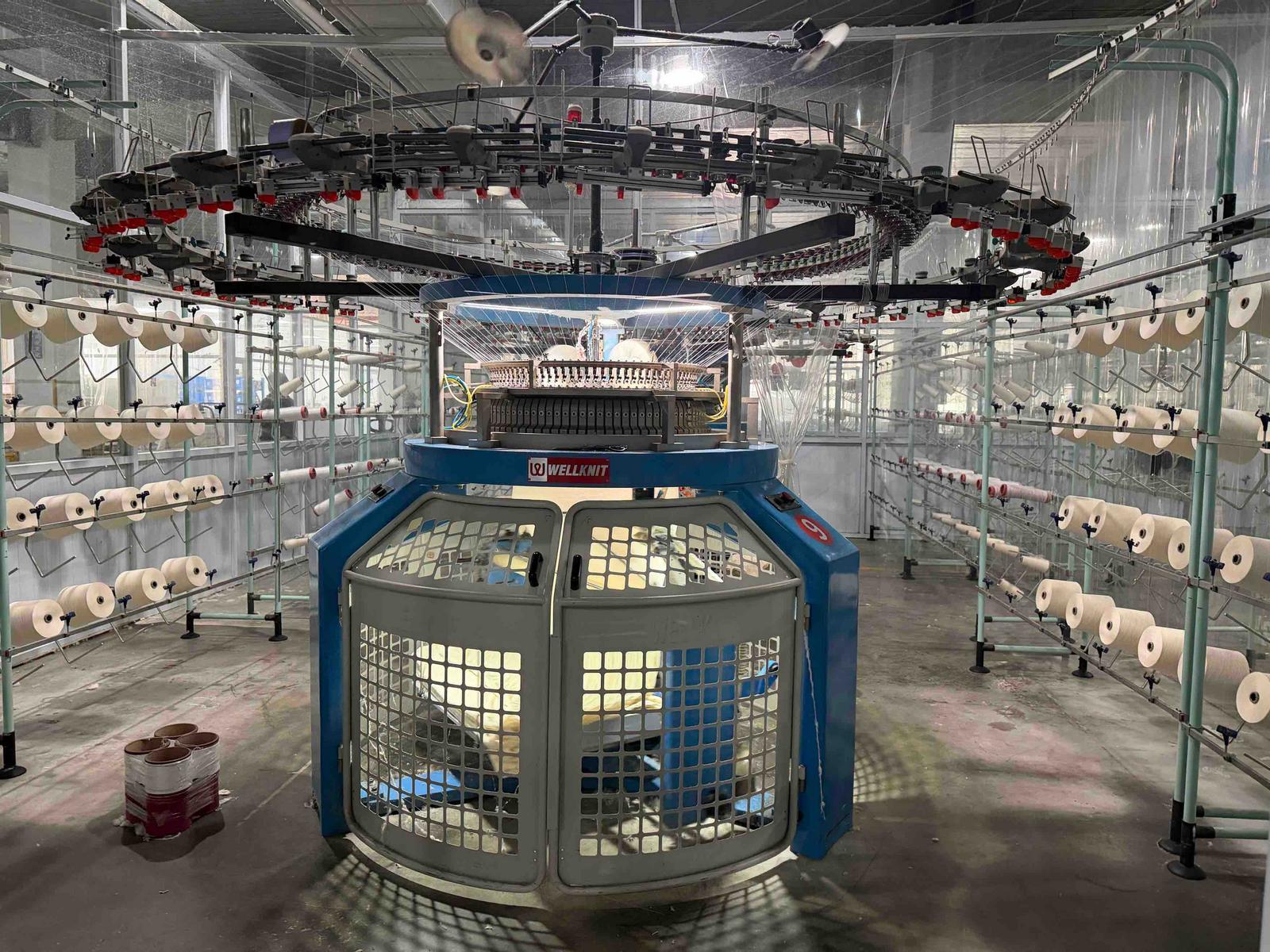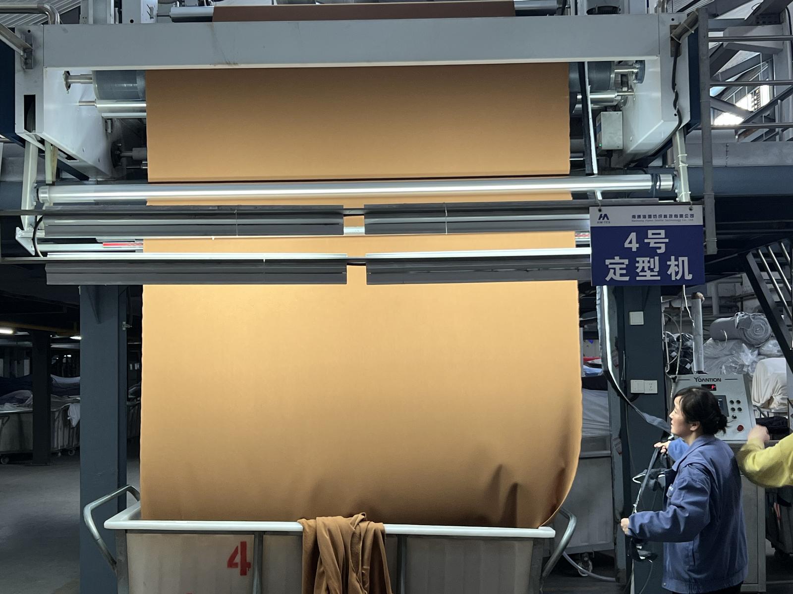 数字化、智能化的加入,让这本账算得更精。在针织面料织造车间,20台针织大圆机高速运转,纱线经设备精密编织成型。“如果线不断,机器可以一直织,织到25公斤才停下,再由工人拖出来,车间每天织布量达5吨。”尹冲说。