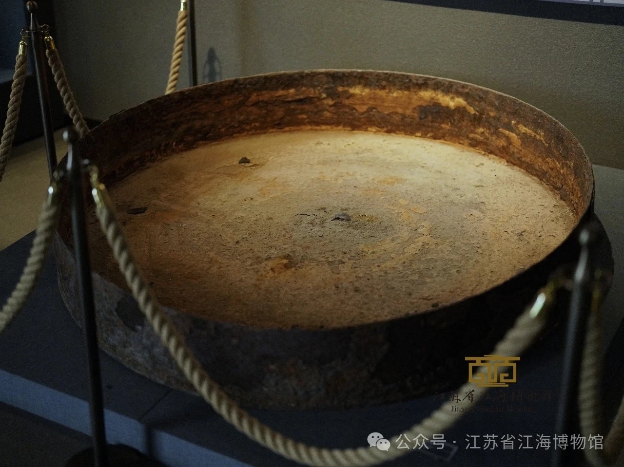 春气初酣,草木吐翠。暖阳轻洒、惠风畅和,我再次步入江苏省江海博物馆,于静穆的光影间,细品江海文化层积日久的深沉与温厚。行至盐业展厅,一口锈色斑驳的大铁锅蓦然入目。此锅直径一百六十一厘米,高二十七厘米,底平而沿口被岁月啃出缺痕,铁面尽是坑洼的印痕。此为清代盐民煮盐之器具,唤作“䥕”。凝望这覆满赭锈的巨锅,仿佛能嗅到往昔灶口飘出的烟火辛腥,听见柴薪噼啪、盐粒在锅底沙沙凝结的声响,思绪顷刻被牵回到“烟火三百里,灶煎满天星”的旧灶地。