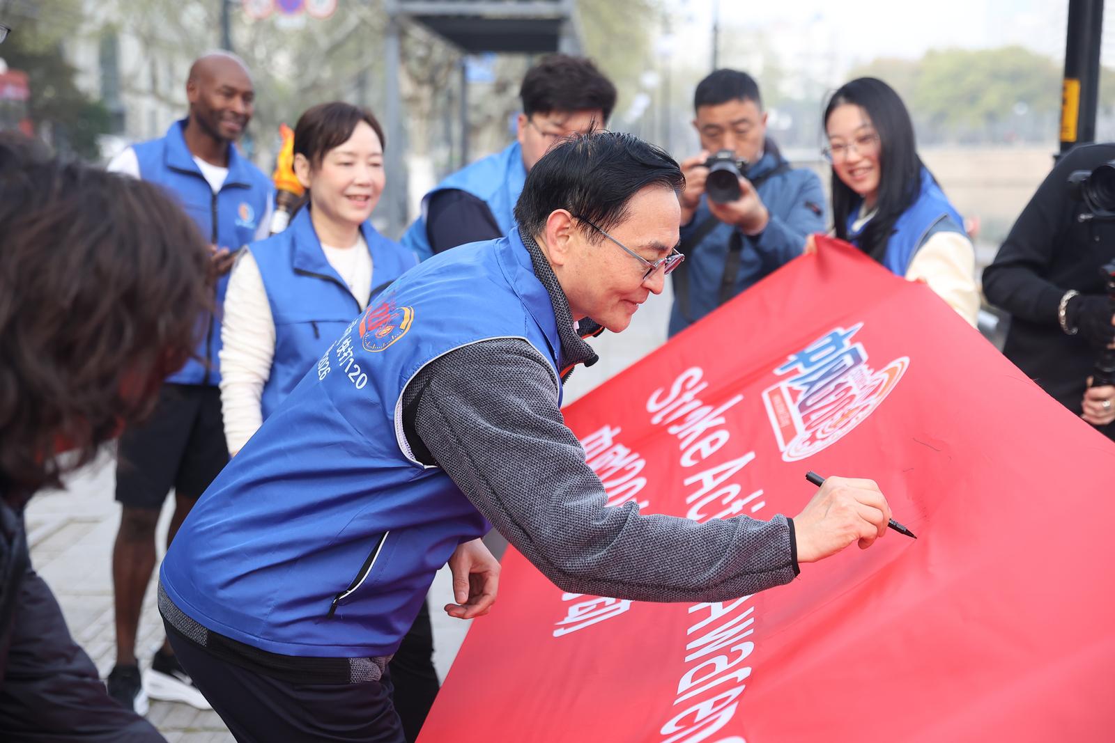 4月4日,田径世界冠军伯纳德·拉加特惊喜现身,与龙舟世界冠军、中风愈后患者陈兆华,南通籍院士吉训明一起,沿着美丽的濠河开启了一场以体育力量传递卒中急救重要性的健步走活动,成功吸引了街头市民的关注。