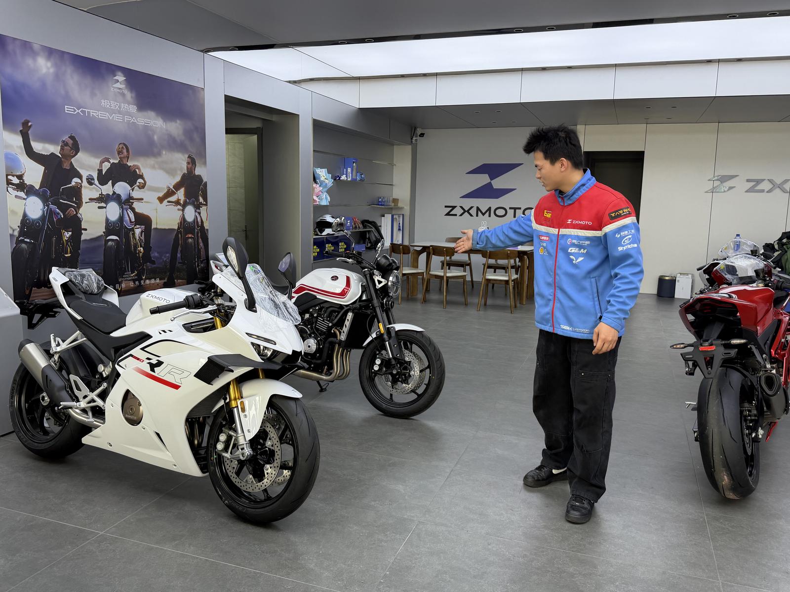 夏奇向记者讲述了一位客人重拾“摩托梦”的购车经历。“丁姓客户今年54岁,他了解到张雪个人经历和品牌创立历程后,备受感动。一天深夜,他刷到我在门店的直播,二话不说,晚上11点便匆匆赶到店内,试驾自己心仪已久的ZX500F车型。”
