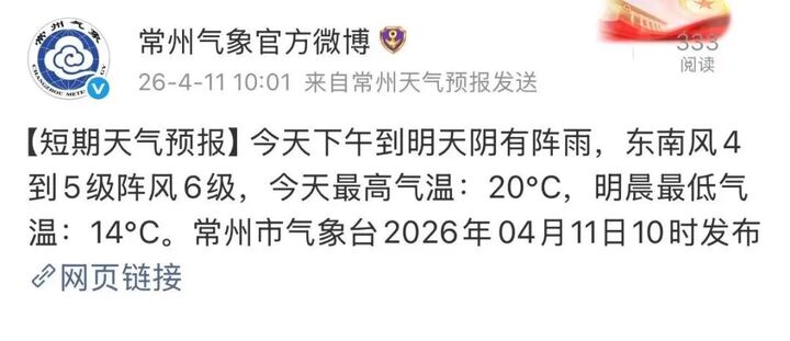 未来几天常州阴雨频繁