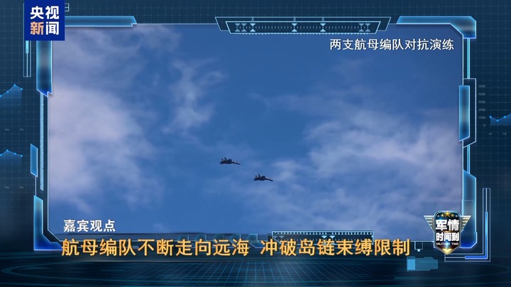 总台军事观察员 魏东旭:远海作战能力的实现,首先要能够走出去,另外要有很强的控制力。人民海军的航母作战体系一直处于发展的状态,不能仅执行近海和沿岸的防御作战任务,一定要走出去。当航母编队走向远海的时候,这意味着整个海上作战体系,可以冲破岛链的束缚和限制,有更大的战略活动空间。一方面可以打破对方的海空封锁和围堵,另一方面也可以带动更多的兵力奔向制胜的方向。