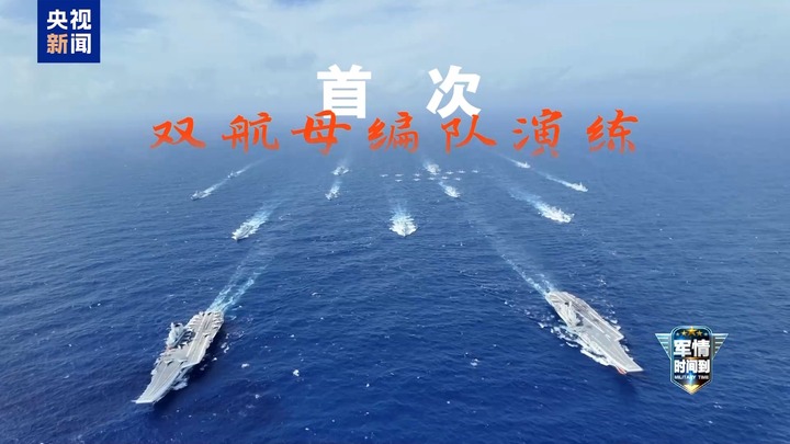 总台军事观察员 魏东旭:双航母编队的演练,人民海军是由易到难。当两艘航母全都实现了100%作战能力之后,我们还想最大程度把航母联合作战的战术和战法进行完善。两个航母编队把更强的力量集中到了一起,可以针对更为强大的目标,同时打出两支强有力的拳头,无论是远程的火力打击能力,还是防空反潜的能力,都会实现1+1>2的效果。