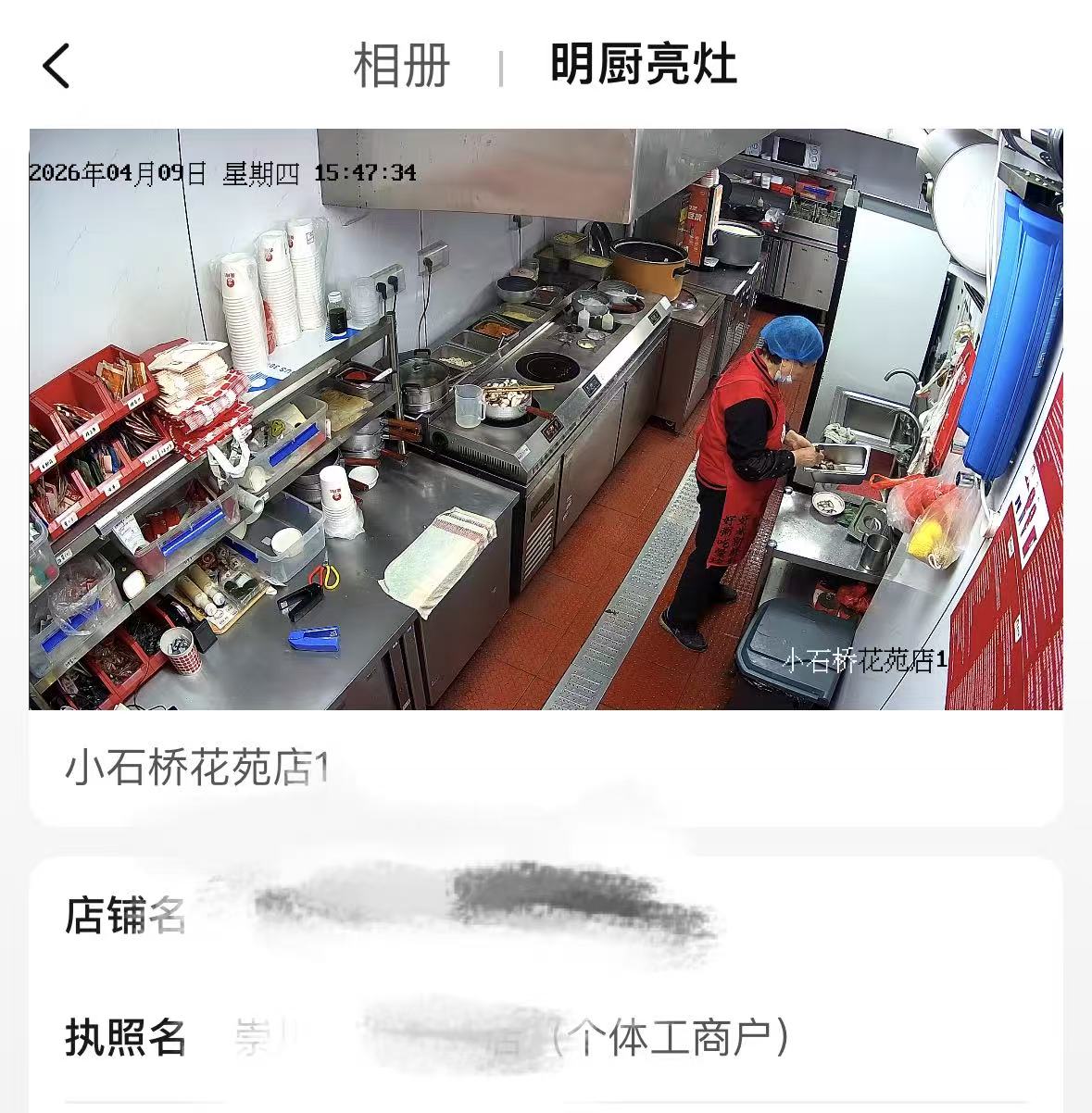 某外卖平台上通过“明厨亮灶”页面展示的某商家后厨实时画面
