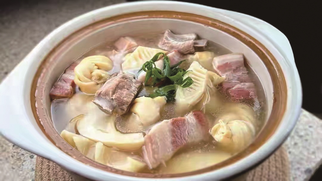 那年春天,他们全家去皖南旅游,在一家农家餐馆里点了一碗腌笃鲜。那鲜美的滋味让平日里不爱喝汤的儿子食欲大开。回到家,儿子仍沉浸在那份鲜香里,央求他亲自做这道菜。