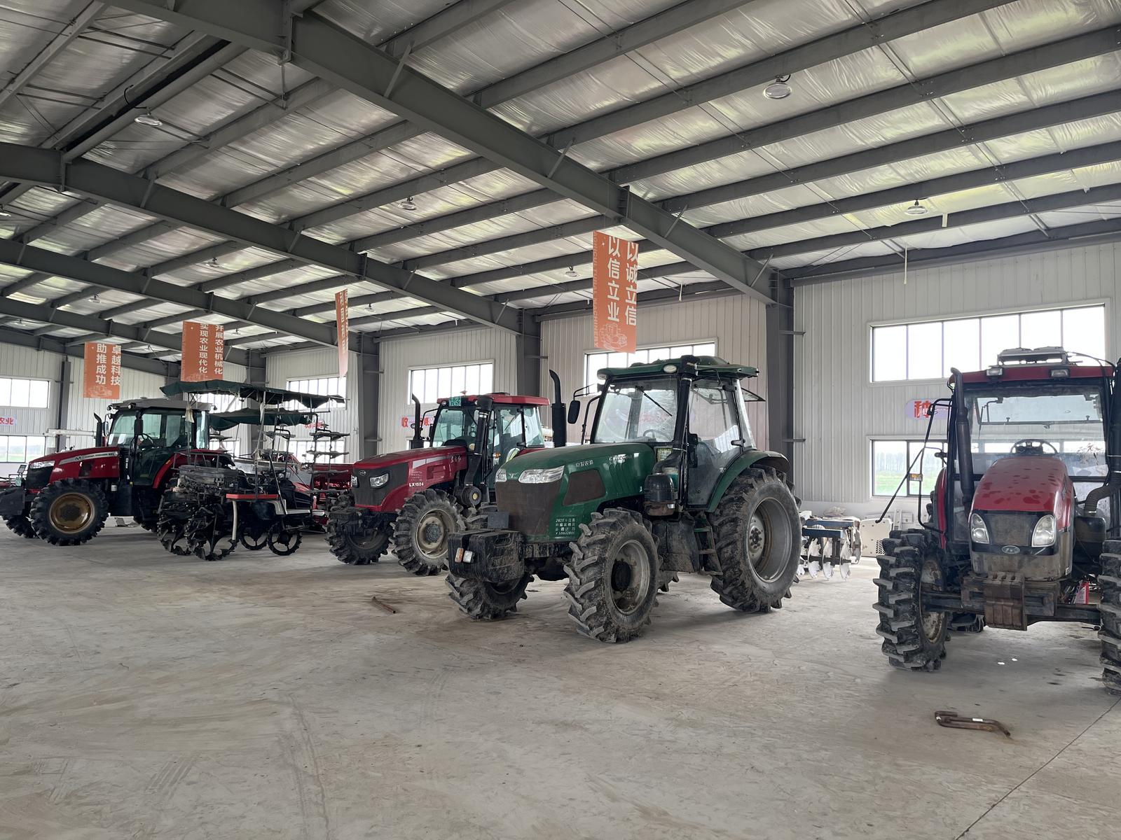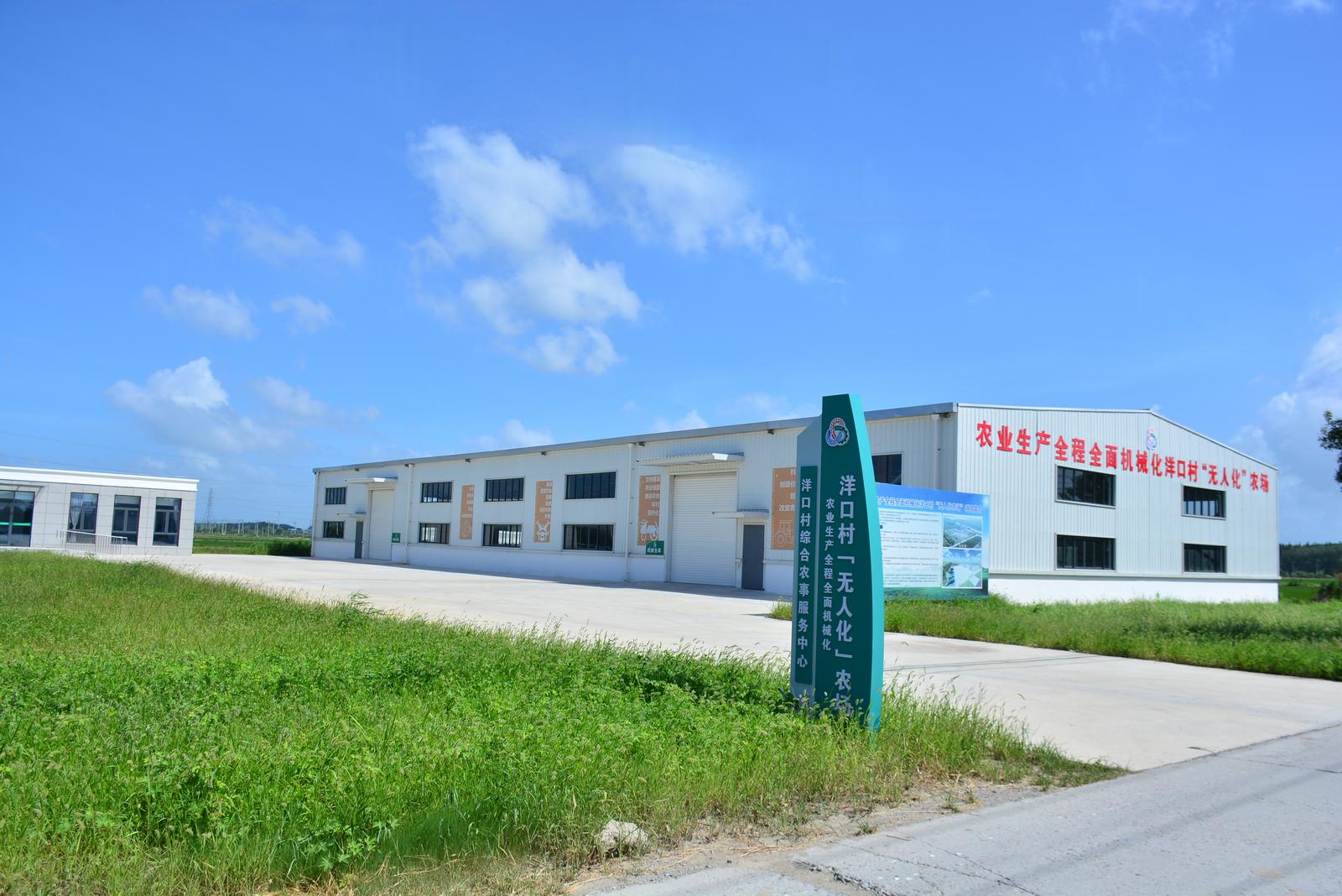 为全面提升农业生产远程化、智能化管理水平,降低田间监管生产成本,夯实粮食生产根基,2023年,洋口村累计投入600余万元建设“无人化”农场项目,建有农机仓库、展示中心,配备各类型农业机械29台,并搭载物联网、大数据、人工智能、无人驾驶等新一代数字农业技术;智能化建设涵盖远程控制系统、农机信息化管理系统、作物长势监测系统三大板块,构建起“耕、种、管、收、储”全链条智能农业体系。