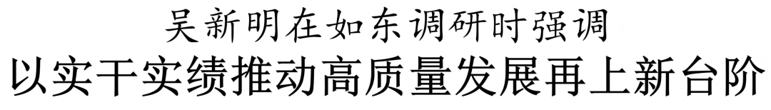 4月14日,市委书记吴新明到如东调研。他强调,要深入学习贯彻习近平总书记对江苏工作重要讲话精神,牢牢把握高质量发展这个首要任务,牢固树立、深入践行正确政绩观,求真务实、敢为善为,以实干实绩推动高质量发展再上新台阶。