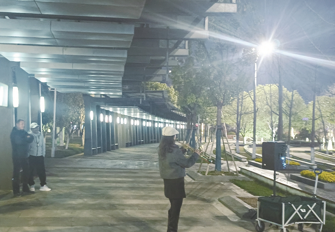 “结果她学得比我还好,因为她比我认真,现在已能熟练演奏上百首曲子了。”坐着聆听的丈夫插话说。女子告诉我,在学萨克斯之前,她一点音乐基础都没有,连简谱都不认识,完全是靠勤奋练习。每首曲子她都要练上千遍,已经形成了肌肉记忆。因为怕影响邻居,他们一般都到公园来练习,一年四季,寒暑不断。