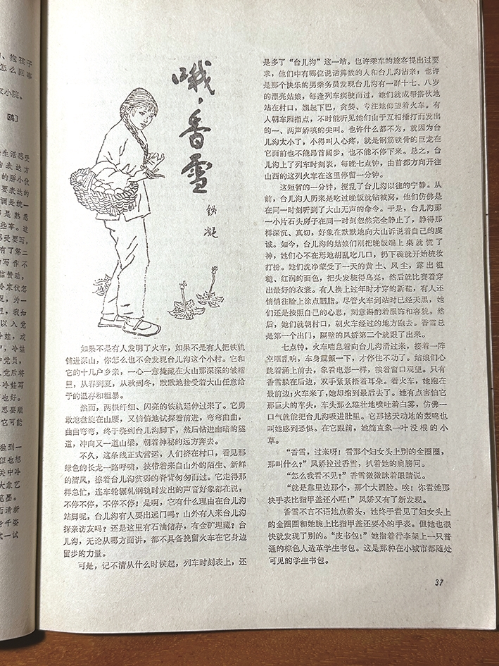 我爱好图书版本收藏,也有这部小说的单行本,但日常阅读的还是20世纪80年代初的《青年文学》,那是小说首次刊登的杂志。微微泛黄的新闻纸上,除了山村少女挎着篮子的题图,还有两页通栏的钢笔画插图。那些黑白线条不事张扬,却恰到好处。
