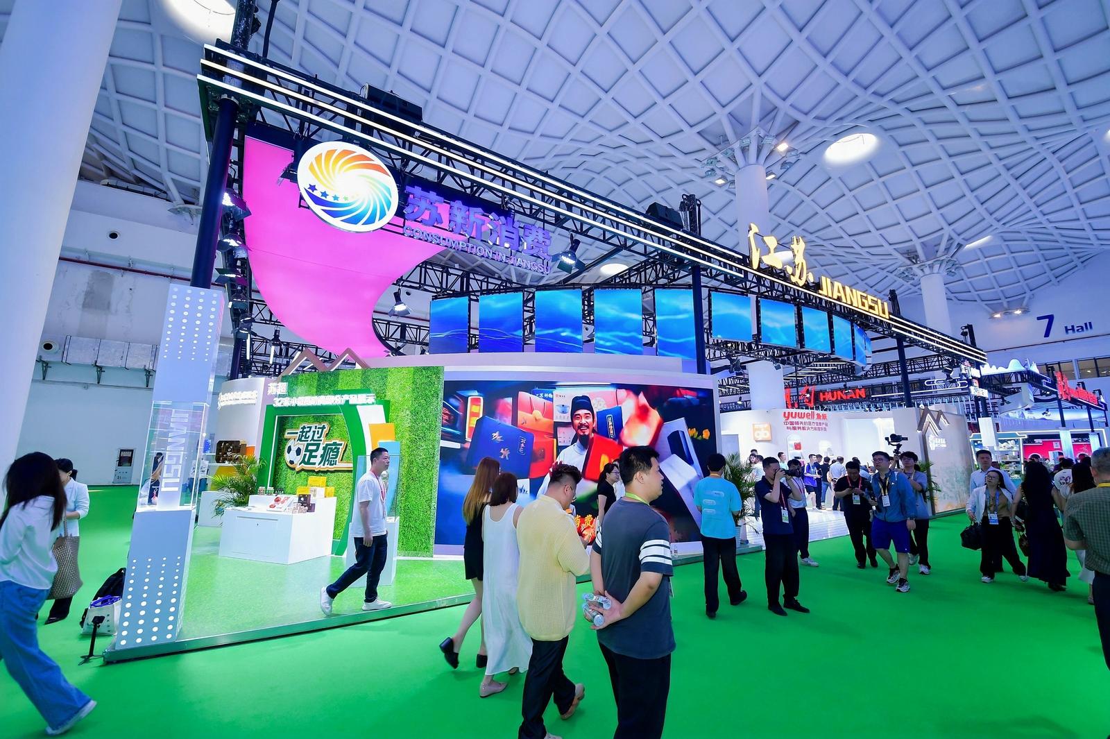 江苏展区以“江苏购精彩 好品正当时”为主题,紧扣文化消费、品质消费、潮流消费、智能消费新趋势,打造苏作见心、苏工见物、苏新见潮、苏创见势四大沉浸式板块。借消博会平台,“苏品苏货”全国行暨“水韵江苏”文旅消费推广(海南站)同步拉开帷幕。现场展示“政策东风起·苏品苏货跨海来”专题,推介“跟着苏超游江苏”主题活动,发布“水韵江苏”全球迎客计划,品牌企业代表进行“首发首秀”。