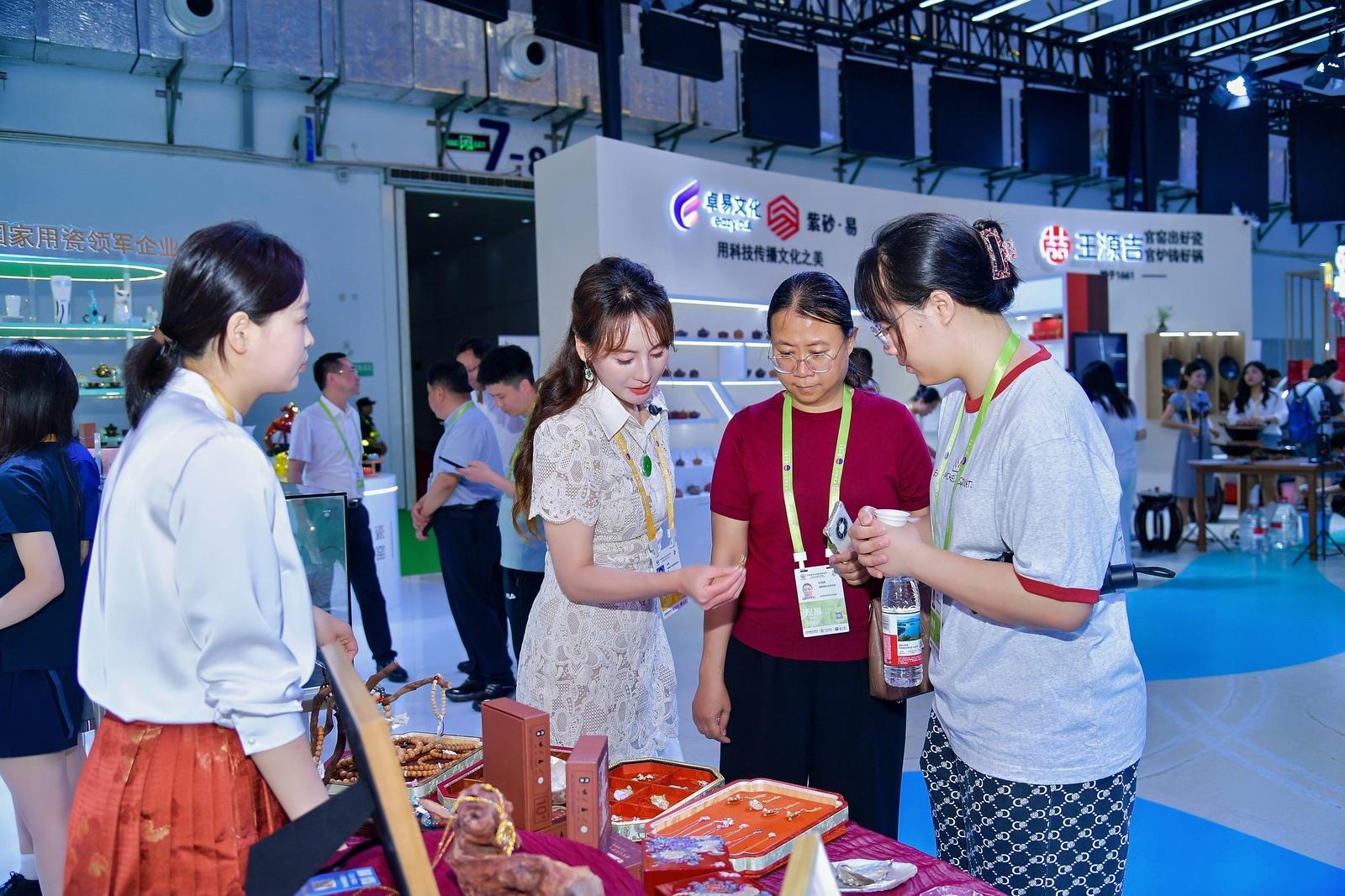 “为把南通特有的民俗、非遗特色传递出去,公司专门设计了AR数字产品形象,设置了互动区域,让现场消费者更好感受南通传统工艺的魅力。”南通老天宝负责人刘芳介绍。作为全国为数不多的珠宝首饰类“中华老字号”品牌,老天宝银楼一直致力于深挖传统文化、专注产品创新研发,此次参展的产品更年轻、更生活化,也更具故事性。