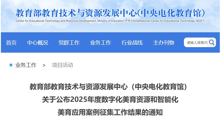 为深入推进学校美育浸润行动,加快人工智能等数字技术在美育领域的应用创新,教育部体育卫生与艺术教育司于2025年7月印发《关于开展2025年度数字化美育资源和智能化美育应用案例征集工作的通知》(教体艺司函〔2025〕11号)。征集工作聚焦数字化美育资源建设与智能化美育应用创新,经自主申报、推荐报送、专家论证等环节,全国共确定艺术技能资源186门、艺术活动资源205个、智能化美育应用案例157个。