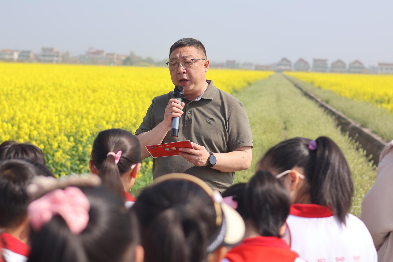 活动中,金沙街道组织农业技术骨干走进现场课堂,由高级农艺师开展田间科普讲解,围绕油菜全生命周期、经济价值及现代农业发展路径,重点介绍物联网监测、无人机植保、智能化管理等应用场景,让学生在“看得见的农业”中理解“看不见的科技”。