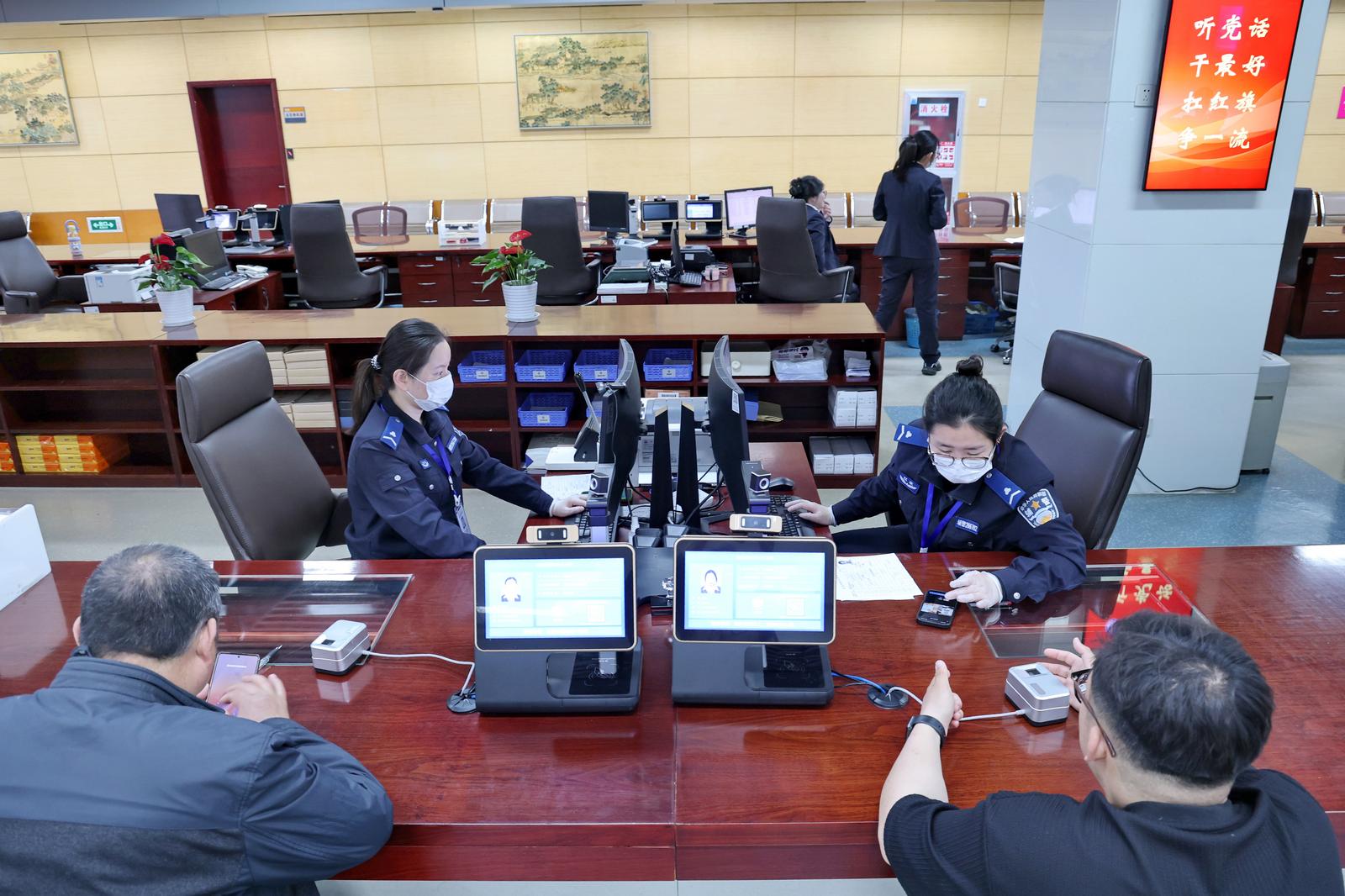 4月16日,市民在南通市政务服务中心公安综合窗口办理身份证换证业务。