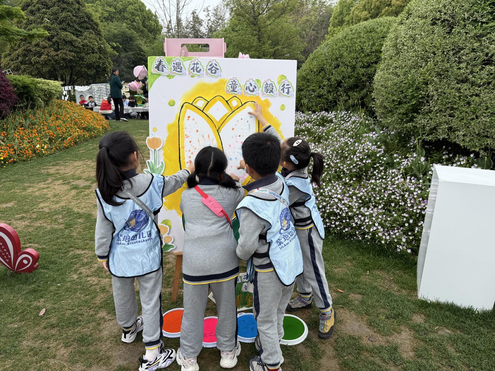 上午9时许,紫琅花谷已然热闹起来。外围区域,紫琅幼儿园中班小朋友们两列纵队,开始春日毅行;来自其他学校的孩子们背着书包,来此春游踏青。紫琅幼儿园大班组孩子们则是精心装扮,带着小板凳、小水杯,秩序井然地走进紫琅花谷中心。