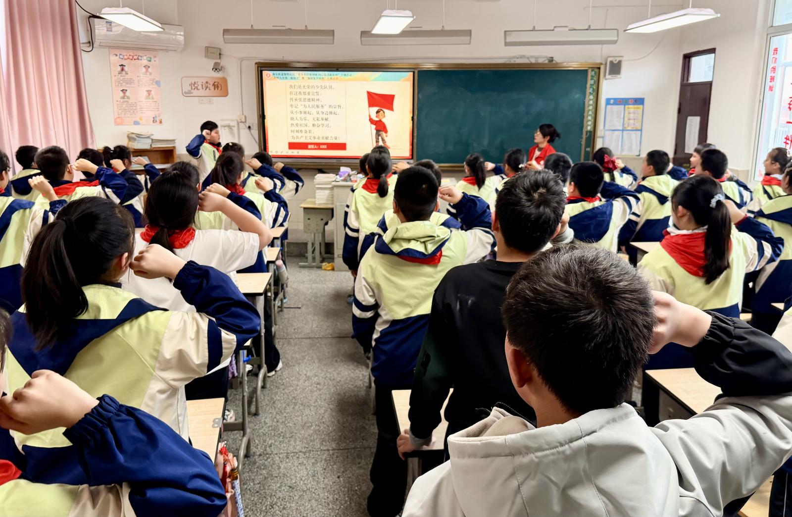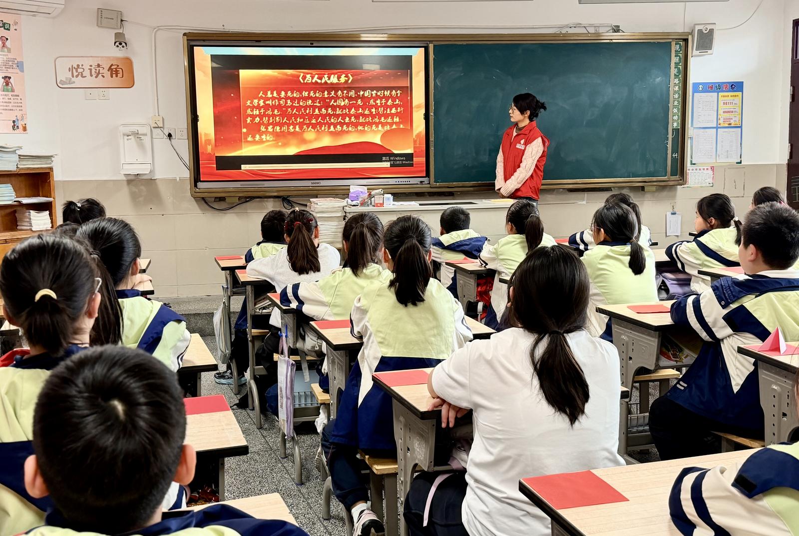 活动最后,全体学生在志愿者的带领下,举起右拳,进行庄严的集体宣誓。“传承张思德精神,牢记‘为人民服务’宗旨;热爱祖国,勤奋学习……”稚嫩却坚定的声音在教室里久久回荡,表达了少先队员们传承红色精神、立志报效祖国的决心。