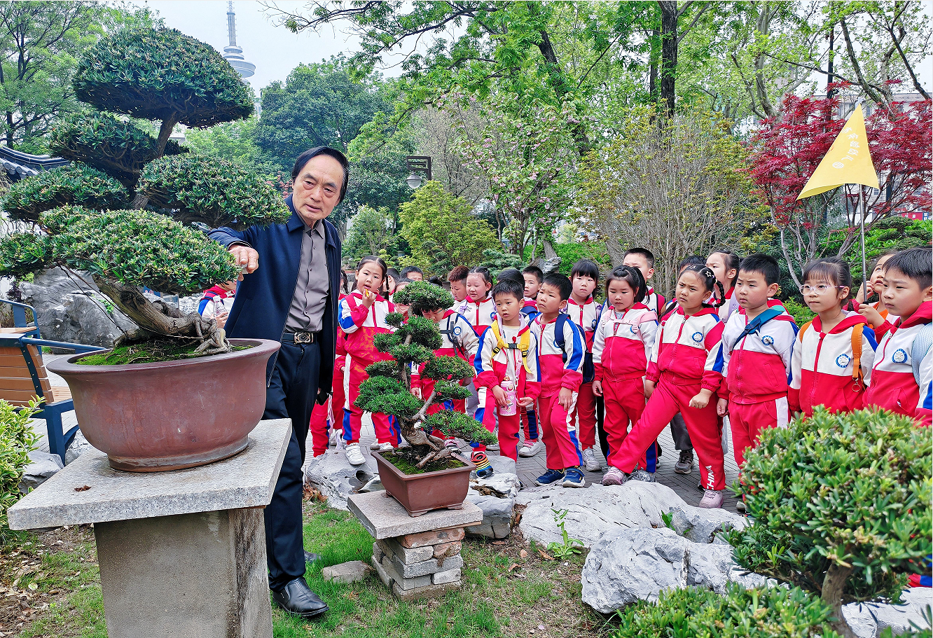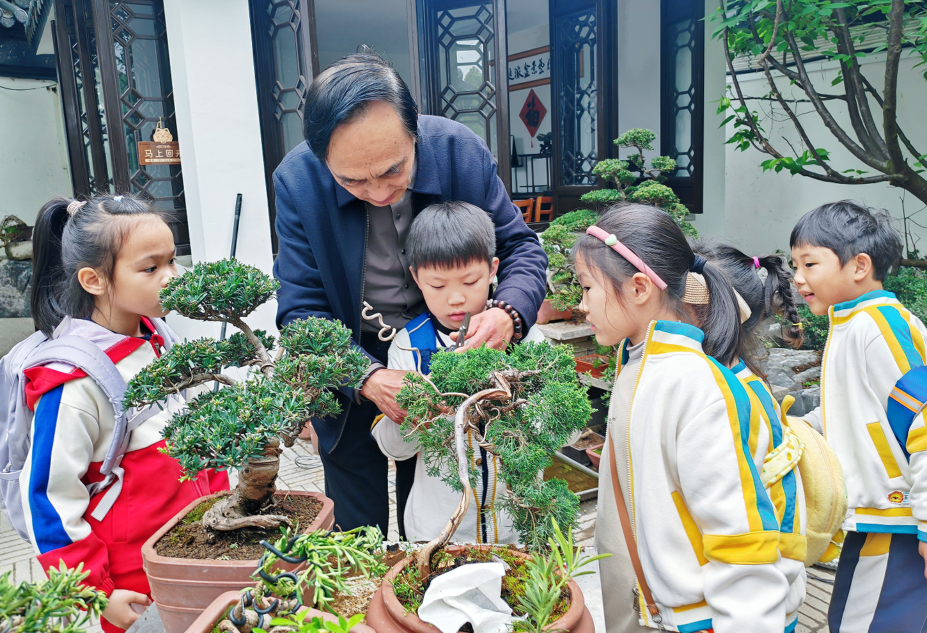17日,南通市实验幼儿园的小朋友走进濠河景区的盆景园,开启了一场别开生面的春游之旅。在园中,盆景大师袁华用生动有趣的语言,为孩子们讲解了盆景的悠久历史和造型技巧。在大师的悉心指导下,小朋友们修剪枝叶、绑扎造型,体验了一把“小小盆景师”的乐趣。