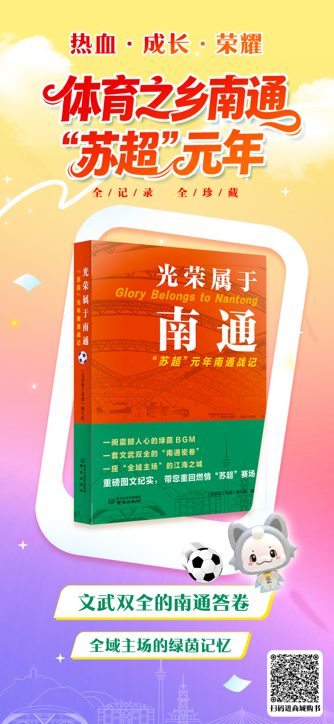 记者获悉,《光荣属于南通——“苏超”元年南通战记》已在小红书、天猫等平台特惠发售。感兴趣的市民和球迷朋友可以扫码购书,一同回顾南通健儿的热血征程!