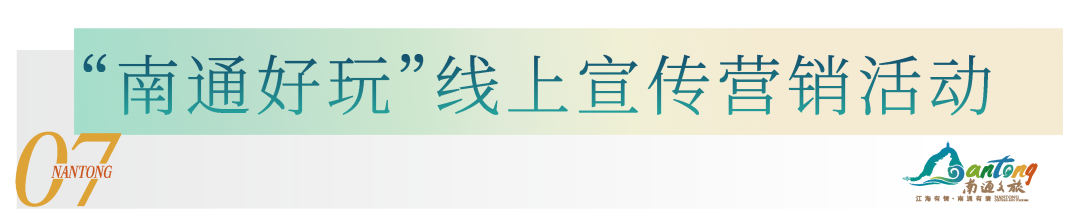 强化线上营销力度,组织开展“通通来通过五一”户外沉浸式直播、长三角主流媒体南通行等活动,邀请澎湃新闻、“水韵江苏”抖音平台直播文旅节开幕式,不断提升系列活动线上热度。