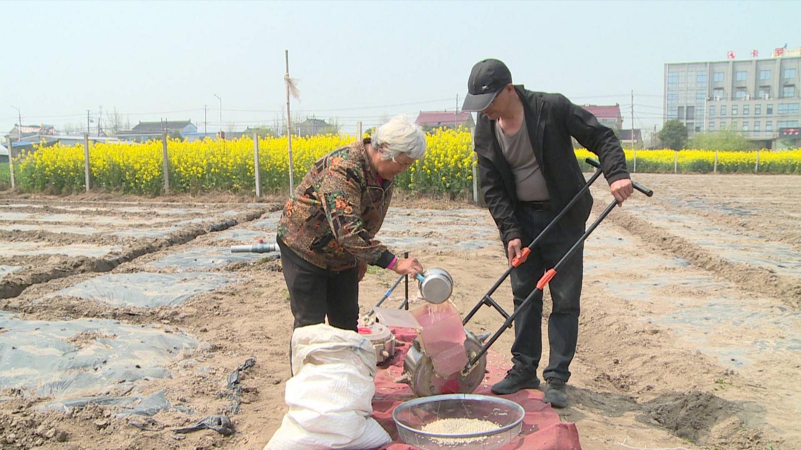 “以前纯人工种刀豆,弯腰弓背一整天也种不了几分地,现在采用人工配合手推式播种机的模式,效率至少提升10倍。”农场主郭小建指着穿梭的播种机告诉记者,从整田、覆膜到播种,农场已实现全程机械化。