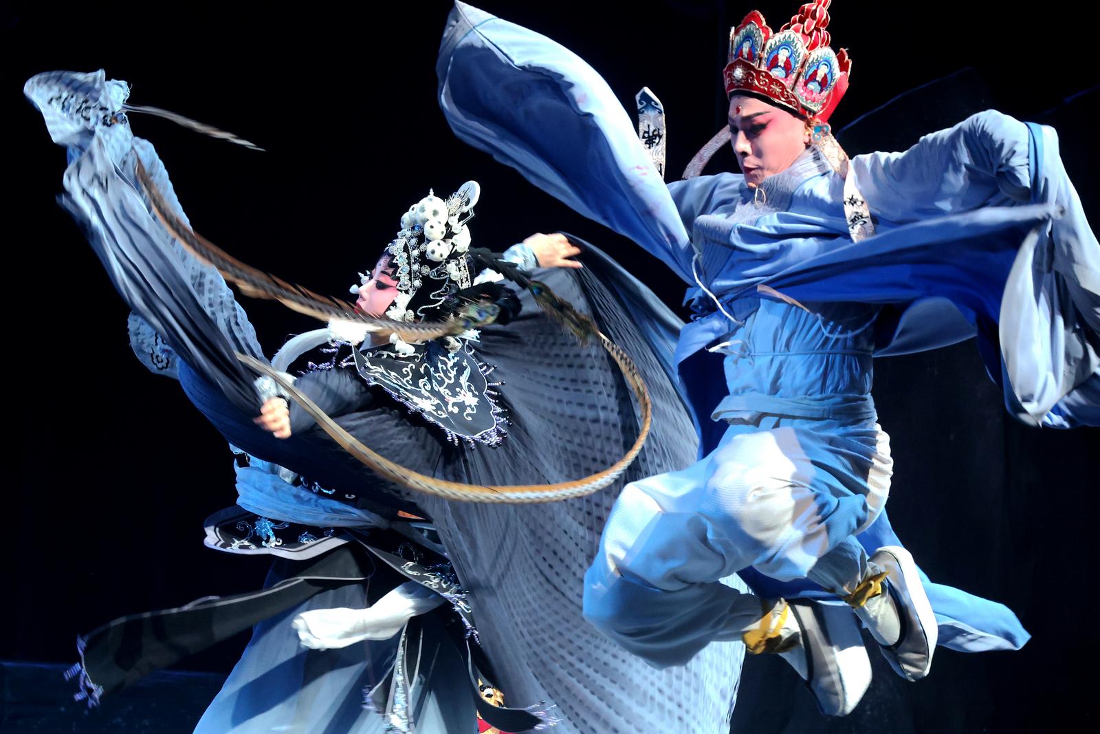 婺剧《三打白骨精》脱胎于文学经典名著《西游记》,舞台上,白骨精乔装成村姑、老妇、老翁的桥段张力十足,孙悟空的机敏果敢、唐僧的迂腐善良、猪八戒的憨态可掬等角色形象鲜明立体,唱词婉转悠扬、武打场面刚劲利落,将婺剧唱、做、念、打的艺术精髓展现得淋漓尽致。该剧在保留婺剧精髓的同时,大胆融入现代舞台美学与科技手段。既延续了婺剧原汁原味的表演程式,又通过现代科技手段拓展了舞台表现空间,实现了“老韵味”与“新潮流”的完美平衡。自2023年3月首演以来,已在海内外演出160余场,出访25个国家,短视频平台相关内容浏览量突破3亿次,成为传统戏曲“破圈”的现象级样本。