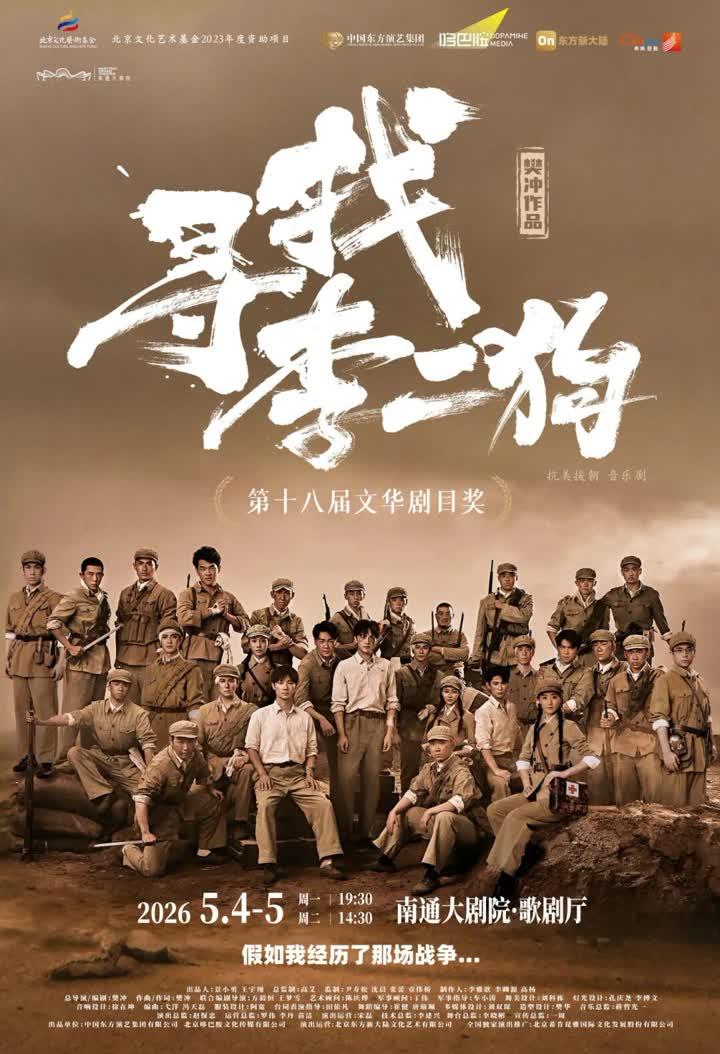 音乐剧《寻找李二狗》以中国人民志愿军抗美援朝为背景,取材于第三十九军第一一六师真实历史,通过当代青年常卫国借助爷爷的回忆录穿越回1950年鸭绿江畔的奇幻设定,展开两代青年的跨时空对话。