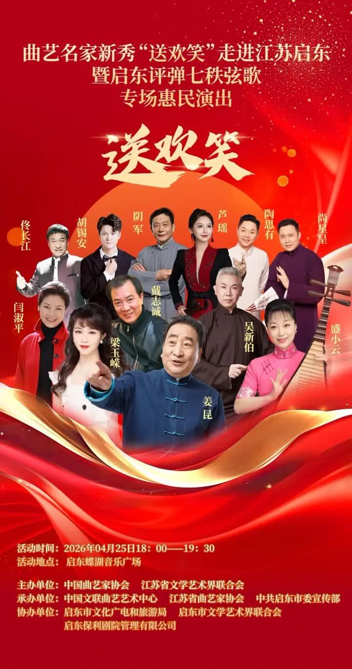 本次演出涵盖评弹、相声、鼓曲、山东快书、二人转等多种曲艺形式,既有本土评弹的温婉雅致,也有南北曲艺的碰撞交融,兼顾观赏性与艺术性,更有启东本土元素惊喜呈现,带你感受曲艺艺术的多元魅力。