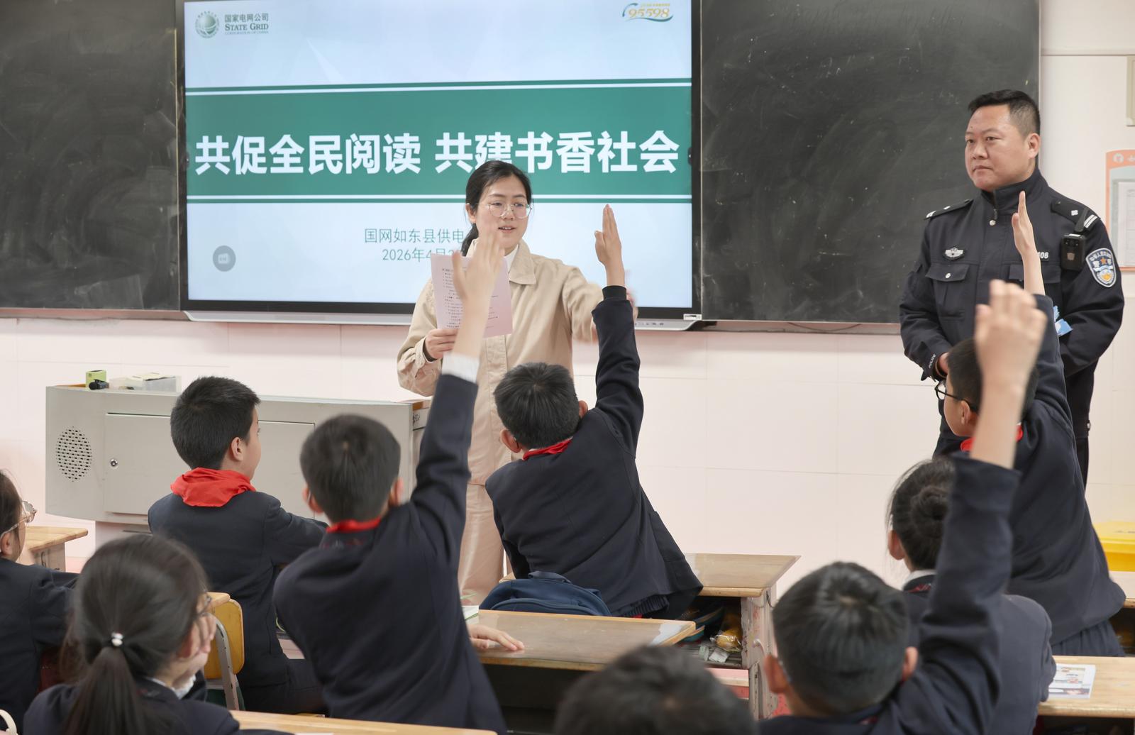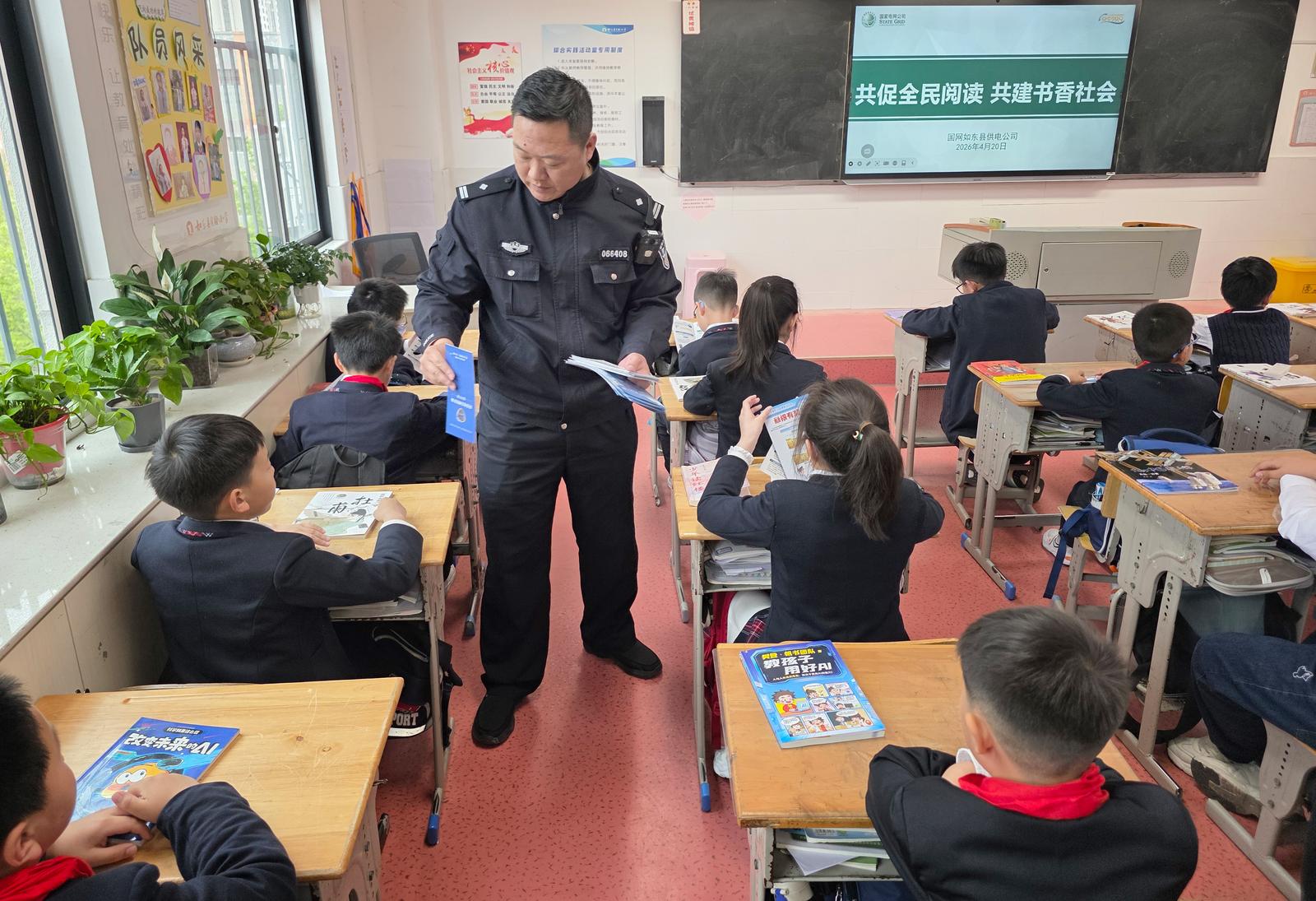 2026年4月20日,国网如东县供电公司、如东县实验小学、如东县公安局城中派出所共同开展“共促全民阅读 共建书香社会”志愿服务活动,把阅读陪伴、反诈启蒙、电力安全、护电普法等送到孩子们身边,以责任担当助力书香社会、平安校园建设。