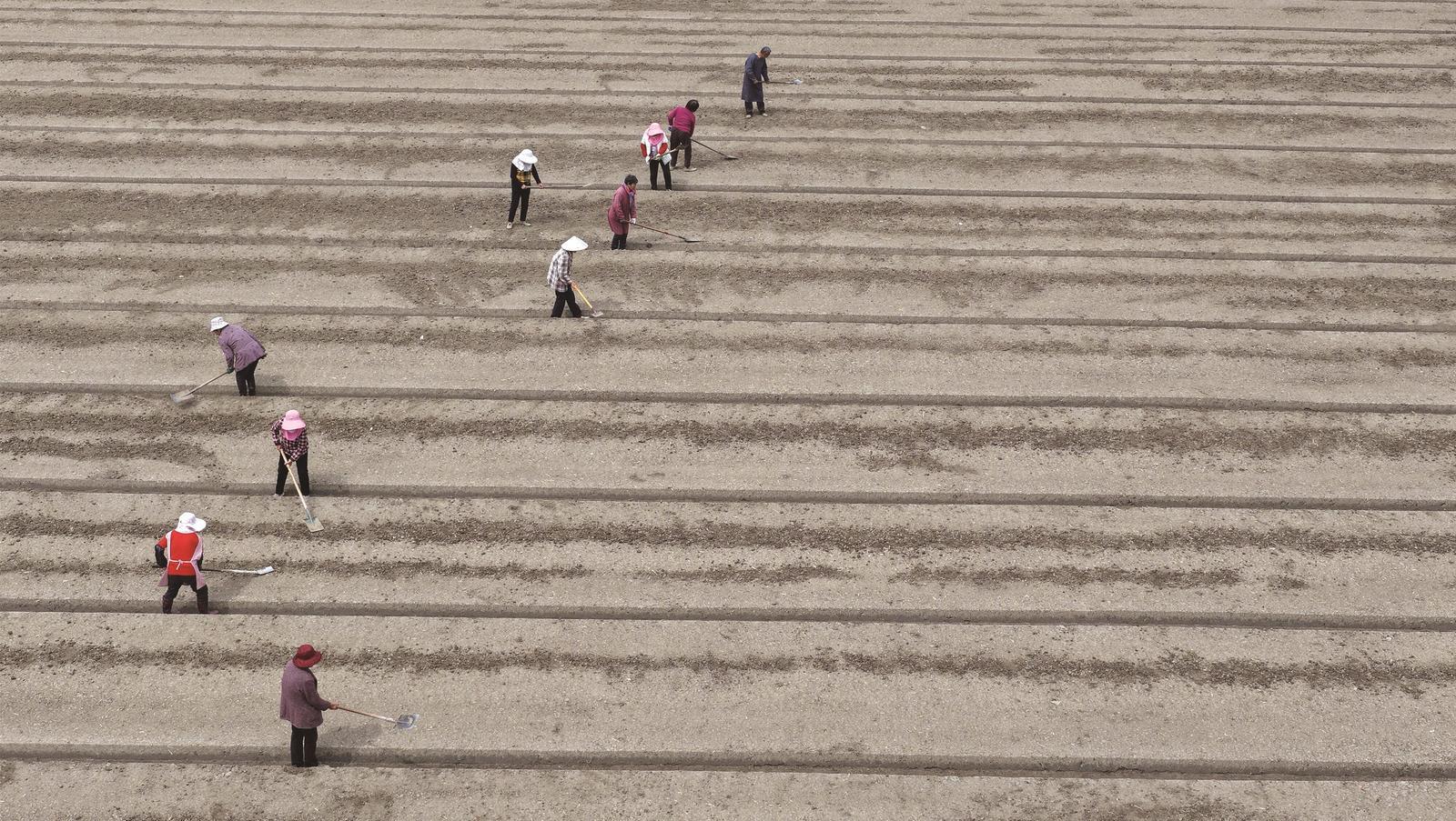 4月19日,海安市墩头镇新舍村农民正在田间平整秧池地,为水稻育秧做准备。周强摄